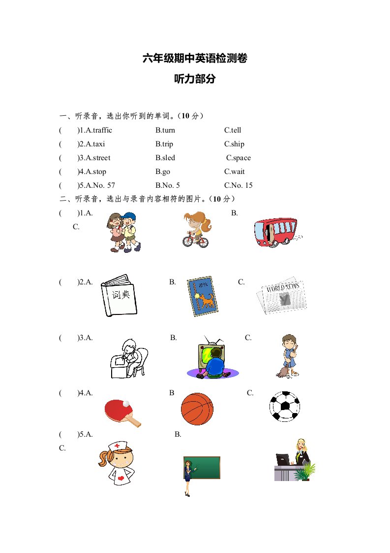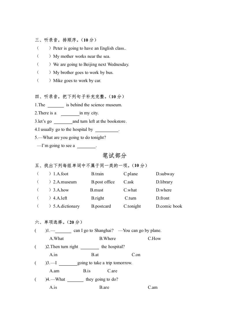 六年级英语上册期中测试卷5(人教版PEP)_共7页