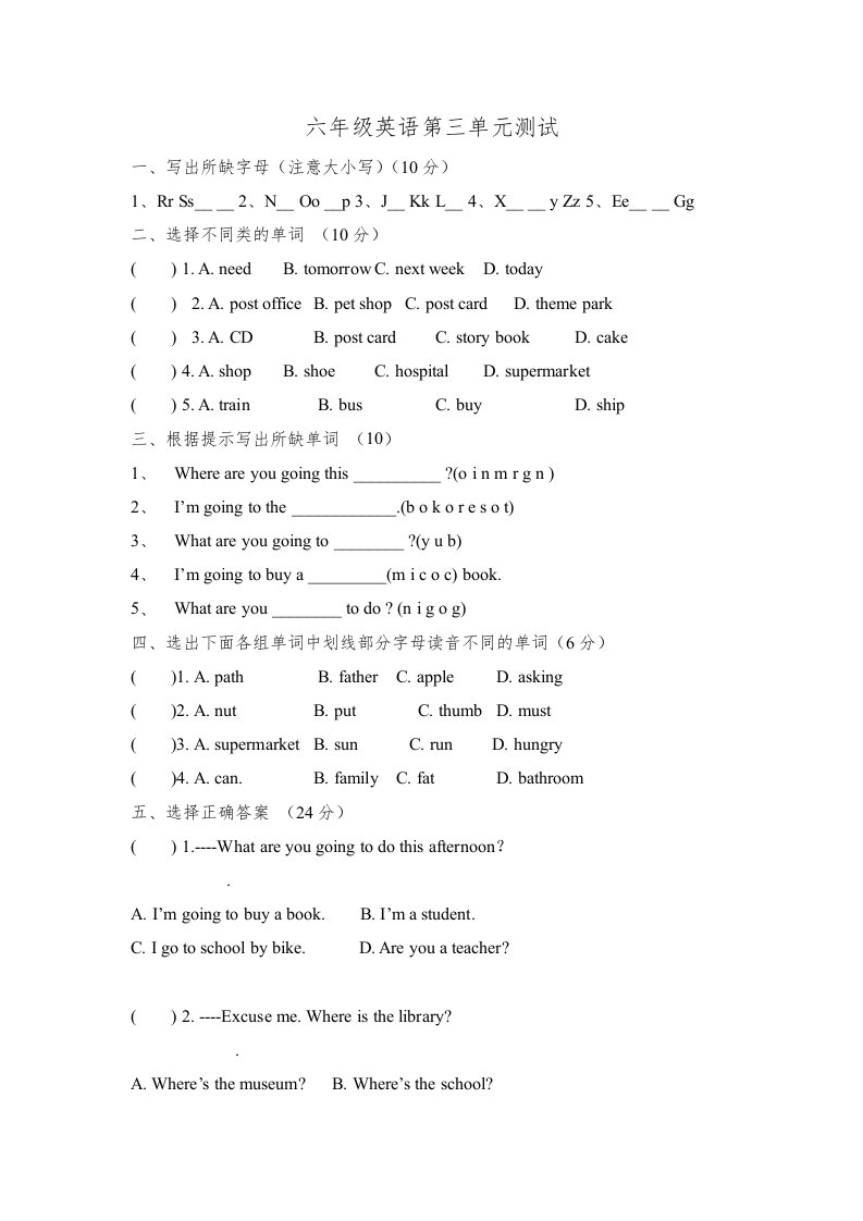 六年级英语上册Unit3Myweekendplan∣人教(PEP)(秋)(人教版PEP)_共5页