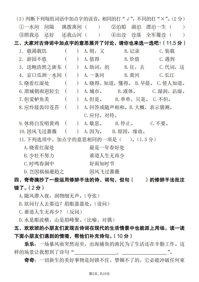 当前位置: 首页小学资源小学六年级正文 【古诗词诵读情境题自测卷(含答案)】六下语文_共10页 小学六年级 6 天前 0 0 5 以上为部分内容预览,如需源文档请登录您的会员账号进行下载! 声明:本站所有文章,如无特殊说明或标注,均为本站原创发布。任何个人或组织,在未征得本站同意时,禁止复制、盗用、采集、发布本站内容到任何网站、书籍等各类媒体平台。如若本站内容侵犯了原著者的合法权益,可联系我们进行处理。 尚学资源永久会员 打赏 收藏 海报 链接