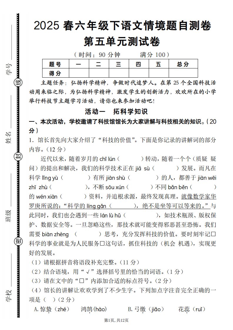 当前位置: 首页小学资源小学六年级正文 六下语文第五单元情境题自测卷(含答案12页)_共12页 小学六年级 6 天前 0 0 10 以上为部分内容预览,如需源文档请登录您的会员账号进行下载! 声明:本站所有文章,如无特殊说明或标注,均为本站原创发布。任何个人或组织,在未征得本站同意时,禁止复制、盗用、采集、发布本站内容到任何网站、书籍等各类媒体平台。如若本站内容侵犯了原著者的合法权益,可联系我们进行处理。 尚学资源永久会员 打赏 收藏 海报 链接