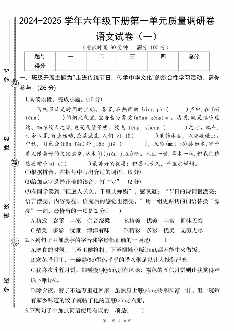 当前位置: 首页小学资源小学六年级正文 2024-2025学年六年级下册语文第一单元质量调研卷(一)_共10页 小学六年级 6 天前 0 0 5 以上为部分内容预览,如需源文档请登录您的会员账号进行下载! 声明:本站所有文章,如无特殊说明或标注,均为本站原创发布。任何个人或组织,在未征得本站同意时,禁止复制、盗用、采集、发布本站内容到任何网站、书籍等各类媒体平台。如若本站内容侵犯了原著者的合法权益,可联系我们进行处理。 尚学资源永久会员 打赏 收藏 海报 链接