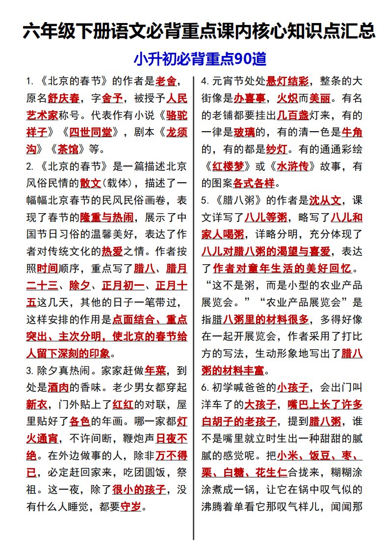 当前位置: 首页小学资源小学六年级正文 六年级下语文课内必背重点90道_共11页 小学六年级 6 天前 0 0 10 以上为部分内容预览,如需源文档请登录您的会员账号进行下载! 声明:本站所有文章,如无特殊说明或标注,均为本站原创发布。任何个人或组织,在未征得本站同意时,禁止复制、盗用、采集、发布本站内容到任何网站、书籍等各类媒体平台。如若本站内容侵犯了原著者的合法权益,可联系我们进行处理。 尚学资源永久会员 打赏 收藏 海报 链接