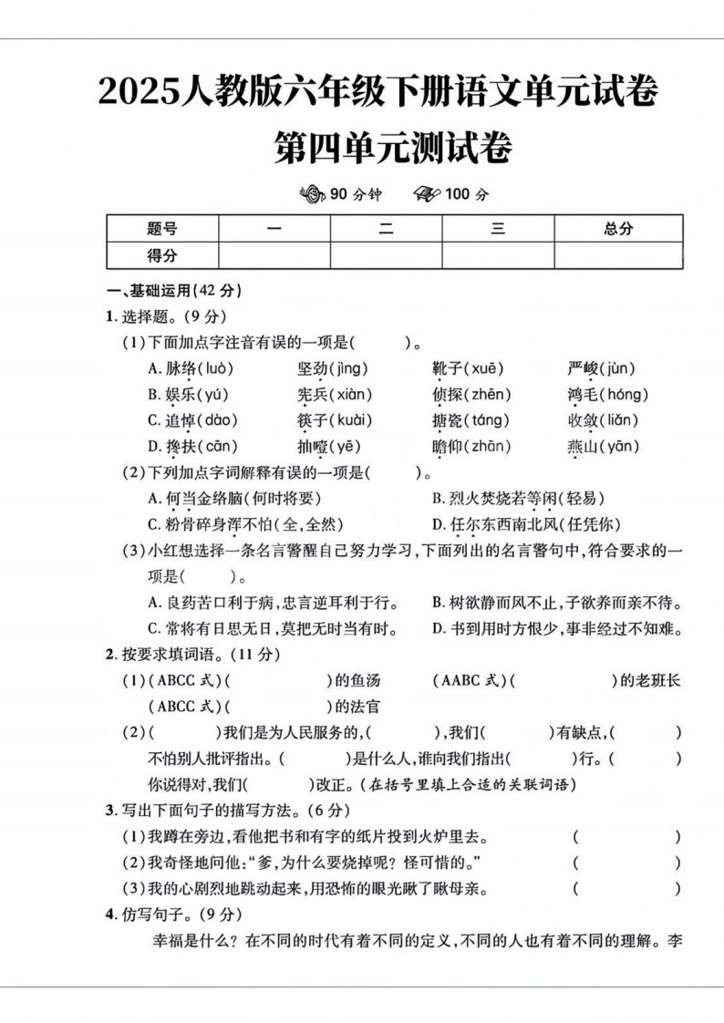 当前位置: 首页小学资源小学六年级正文 六年级下语文第四单元检测卷-2_共4页 小学六年级 6 天前 0 0 5 以上为部分内容预览,如需源文档请登录您的会员账号进行下载! 声明:本站所有文章,如无特殊说明或标注,均为本站原创发布。任何个人或组织,在未征得本站同意时,禁止复制、盗用、采集、发布本站内容到任何网站、书籍等各类媒体平台。如若本站内容侵犯了原著者的合法权益,可联系我们进行处理。 尚学资源永久会员 打赏 收藏 海报 链接