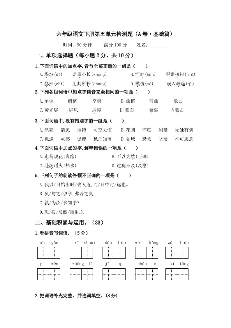 当前位置: 首页小学资源小学六年级正文 第五单元(A卷·基础篇)-2024-2025学年六年级语文下册单元分层训练AB卷(部编版)_共12页 小学六年级 7 天前 0 0 10 以上为部分内容预览,如需源文档请登录您的会员账号进行下载! 声明:本站所有文章,如无特殊说明或标注,均为本站原创发布。任何个人或组织,在未征得本站同意时,禁止复制、盗用、采集、发布本站内容到任何网站、书籍等各类媒体平台。如若本站内容侵犯了原著者的合法权益,可联系我们进行处理。 尚学资源永久会员 打赏 收藏 海报 链接