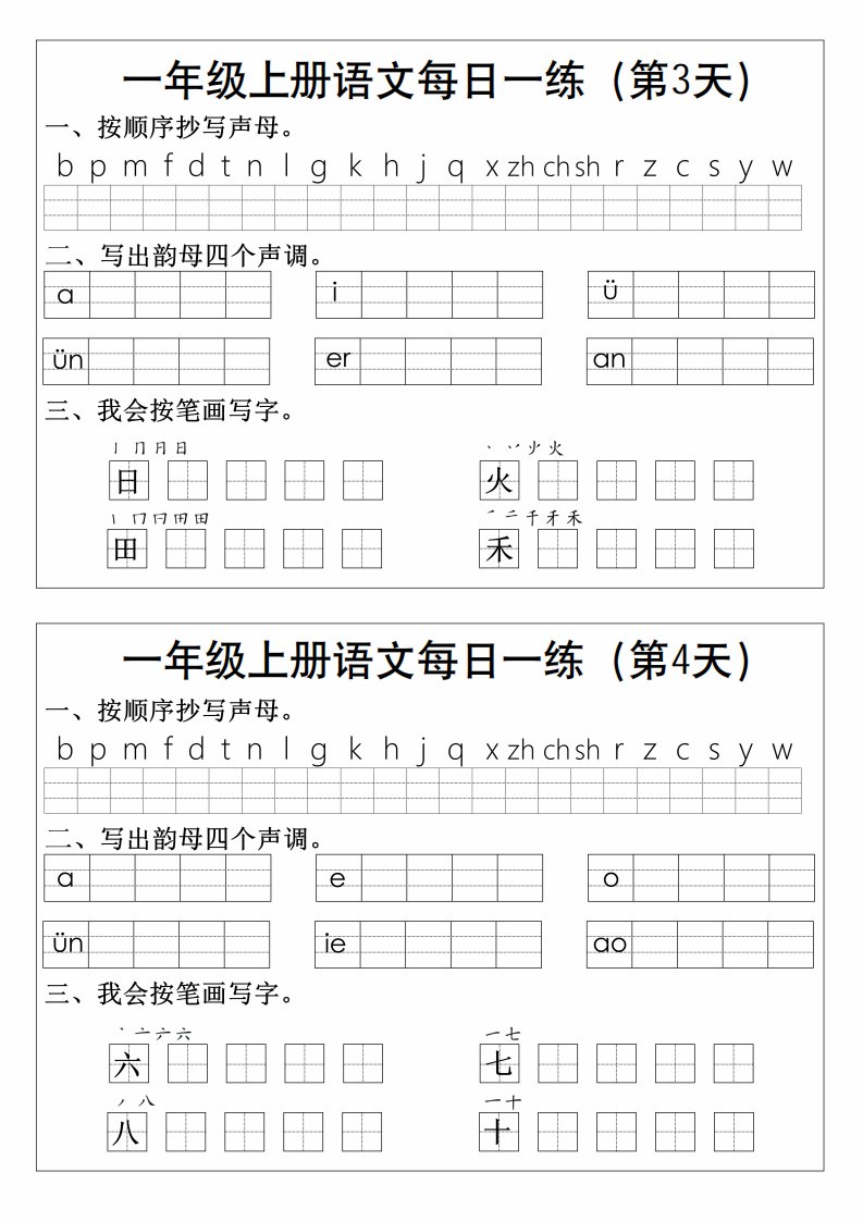 当前位置: 首页小学资源小学一年级正文 一上语文拼音生字每日一练_共12页 小学一年级 2 周前 0 0 10 以上为部分内容预览,如需源文档请登录您的会员账号进行下载! 声明:本站所有文章,如无特殊说明或标注,均为本站原创发布。任何个人或组织,在未征得本站同意时,禁止复制、盗用、采集、发布本站内容到任何网站、书籍等各类媒体平台。如若本站内容侵犯了原著者的合法权益,可联系我们进行处理。 尚学资源永久会员 打赏 收藏 海报 链接