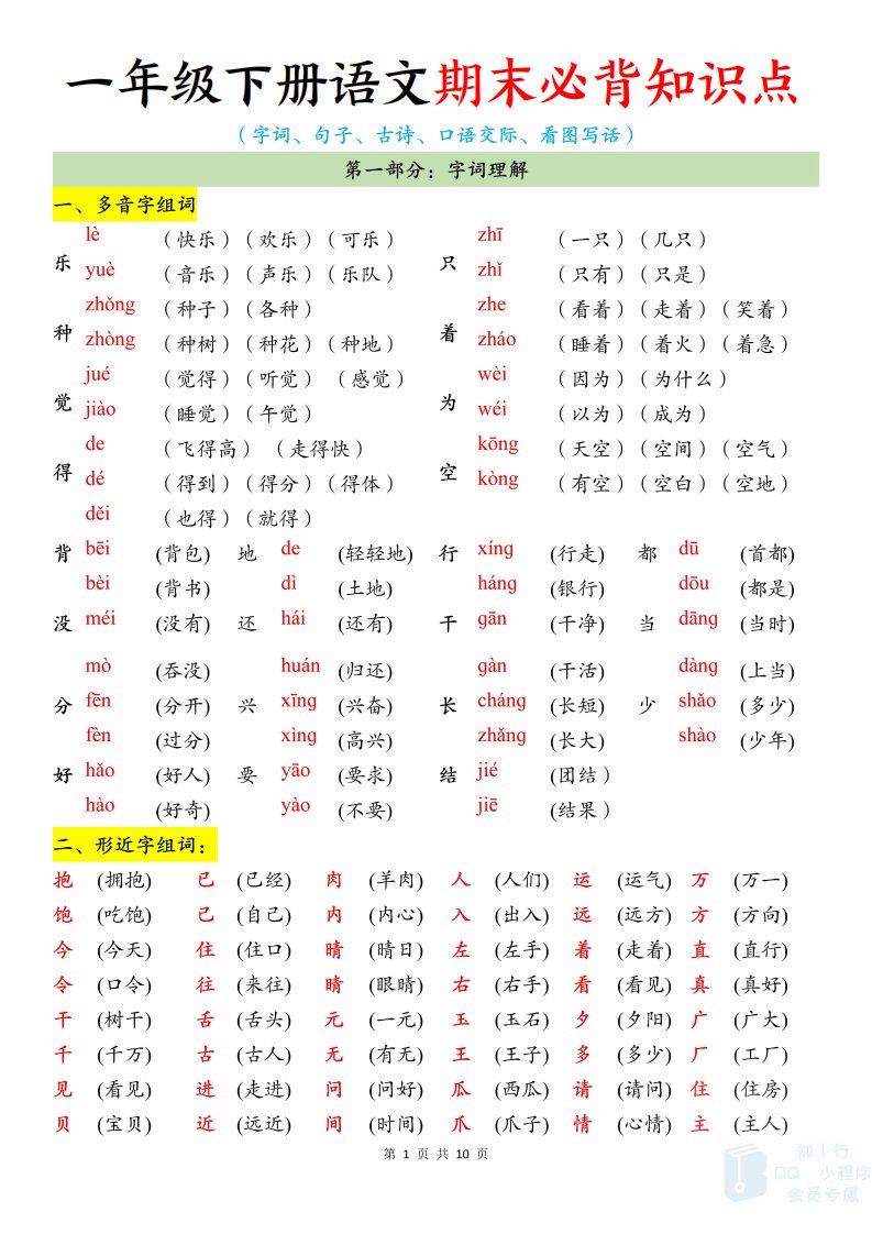 当前位置: 首页小学资源小学一年级正文 新一下语文期末必背知识点(10页)_共10页 小学一年级 2 周前 0 0 5 以上为部分内容预览,如需源文档请登录您的会员账号进行下载! 声明:本站所有文章,如无特殊说明或标注,均为本站原创发布。任何个人或组织,在未征得本站同意时,禁止复制、盗用、采集、发布本站内容到任何网站、书籍等各类媒体平台。如若本站内容侵犯了原著者的合法权益,可联系我们进行处理。 尚学资源永久会员 打赏 收藏 海报 链接