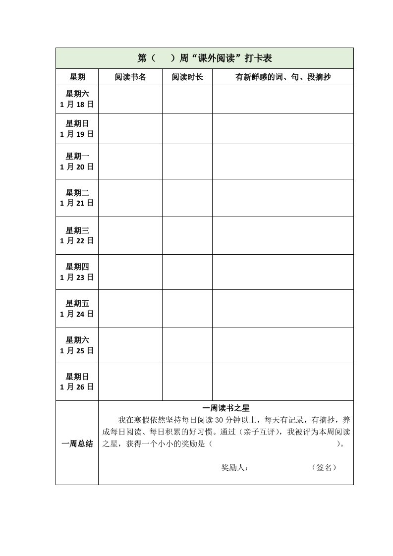 当前位置: 首页小学资源小学六年级正文 【2025寒假】六下语文每日课外阅读记录表5页_共6页 小学六年级 6 天前 0 0 5 以上为部分内容预览,如需源文档请登录您的会员账号进行下载! 声明:本站所有文章,如无特殊说明或标注,均为本站原创发布。任何个人或组织,在未征得本站同意时,禁止复制、盗用、采集、发布本站内容到任何网站、书籍等各类媒体平台。如若本站内容侵犯了原著者的合法权益,可联系我们进行处理。 尚学资源永久会员 打赏 收藏 海报 链接
