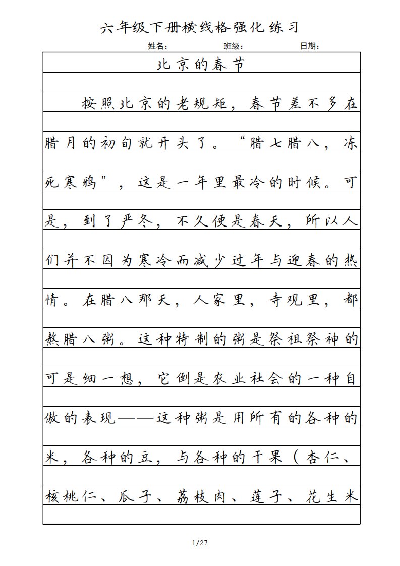 当前位置: 首页小学资源小学六年级正文 六年级语文下册横线格(部编版)_共27页 小学六年级 6 天前 0 0 15 以上为部分内容预览,如需源文档请登录您的会员账号进行下载! 声明:本站所有文章,如无特殊说明或标注,均为本站原创发布。任何个人或组织,在未征得本站同意时,禁止复制、盗用、采集、发布本站内容到任何网站、书籍等各类媒体平台。如若本站内容侵犯了原著者的合法权益,可联系我们进行处理。 尚学资源永久会员 打赏 收藏 海报 链接