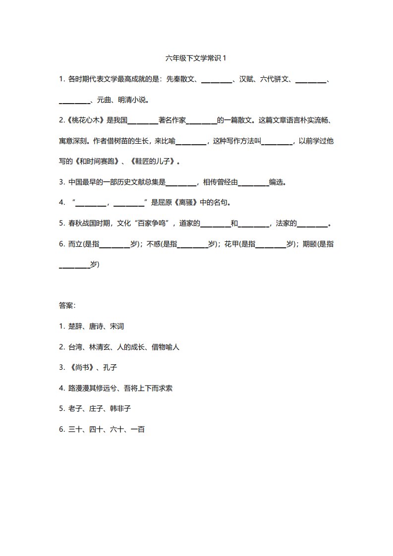 当前位置: 首页小学资源小学六年级正文 六年级下文学常识练习_共7页 小学六年级 6 天前 0 0 5 以上为部分内容预览,如需源文档请登录您的会员账号进行下载! 声明:本站所有文章,如无特殊说明或标注,均为本站原创发布。任何个人或组织,在未征得本站同意时,禁止复制、盗用、采集、发布本站内容到任何网站、书籍等各类媒体平台。如若本站内容侵犯了原著者的合法权益,可联系我们进行处理。 尚学资源永久会员 打赏 收藏 海报 链接