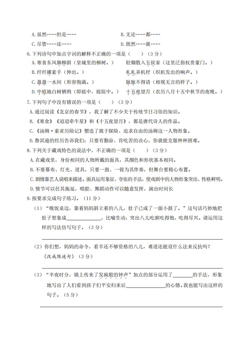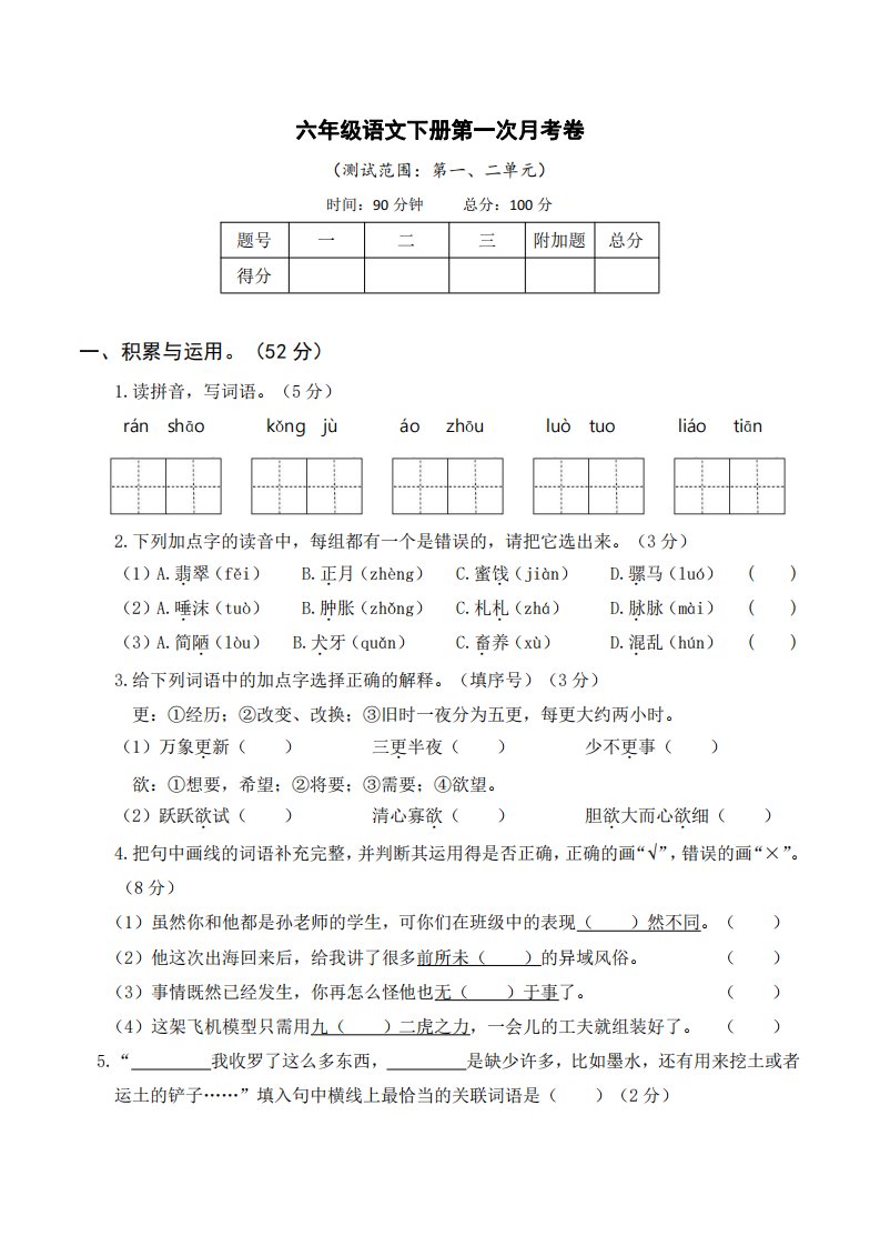 当前位置: 首页小学资源小学六年级正文 六年级语文下册第一次月考_共6页 小学六年级 6 天前 0 0 5 以上为部分内容预览,如需源文档请登录您的会员账号进行下载! 声明:本站所有文章,如无特殊说明或标注,均为本站原创发布。任何个人或组织,在未征得本站同意时,禁止复制、盗用、采集、发布本站内容到任何网站、书籍等各类媒体平台。如若本站内容侵犯了原著者的合法权益,可联系我们进行处理。 尚学资源永久会员 打赏 收藏 海报 链接