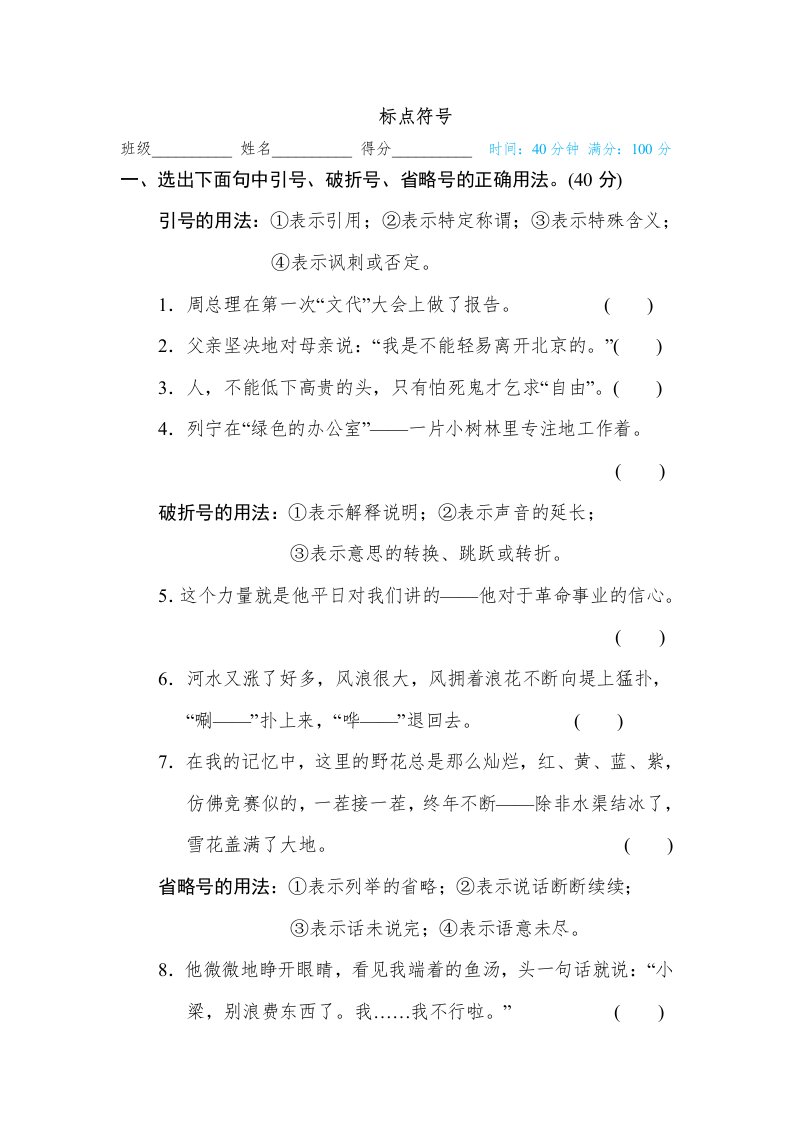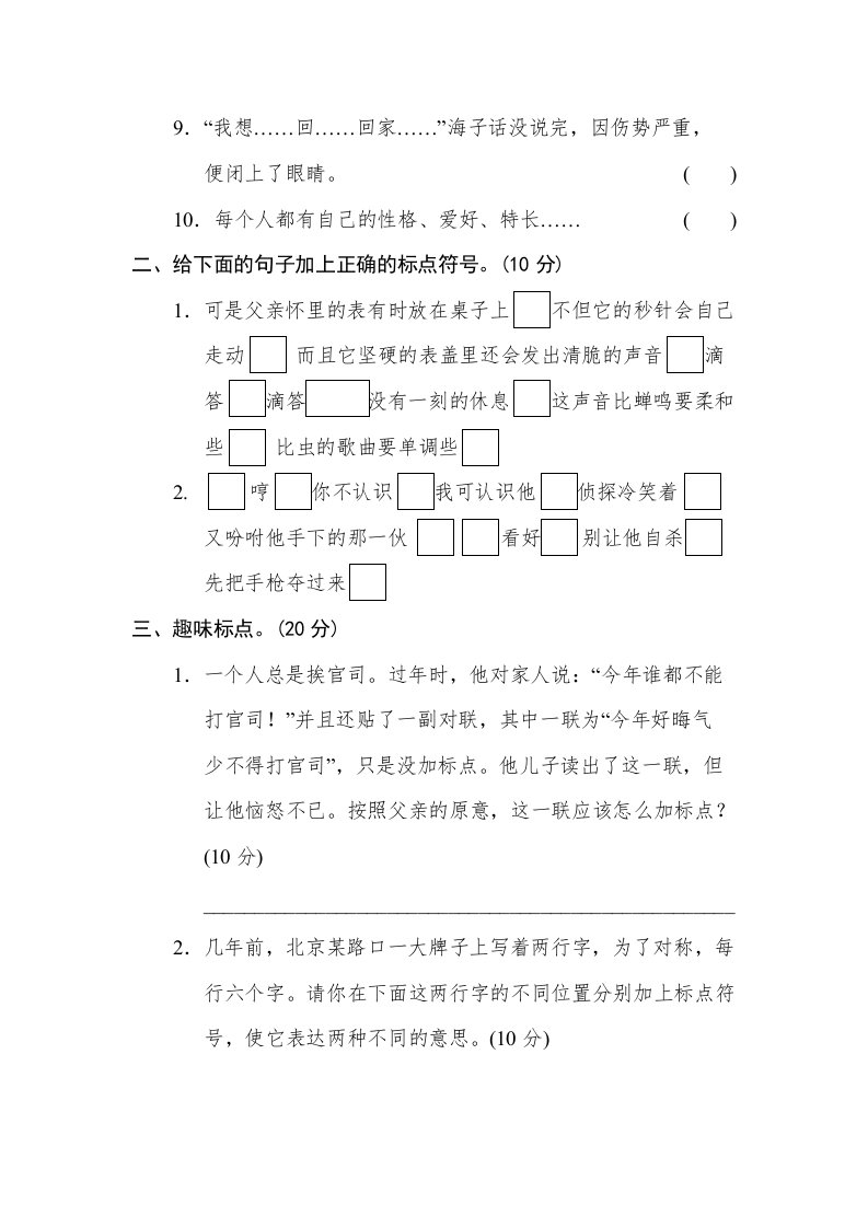 当前位置: 首页小学资源小学六年级正文 六年级语文下册标点符号(部编版)_共6页 小学六年级 6 天前 0 0 5 以上为部分内容预览,如需源文档请登录您的会员账号进行下载! 声明:本站所有文章,如无特殊说明或标注,均为本站原创发布。任何个人或组织,在未征得本站同意时,禁止复制、盗用、采集、发布本站内容到任何网站、书籍等各类媒体平台。如若本站内容侵犯了原著者的合法权益,可联系我们进行处理。 尚学资源永久会员 打赏 收藏 海报 链接
