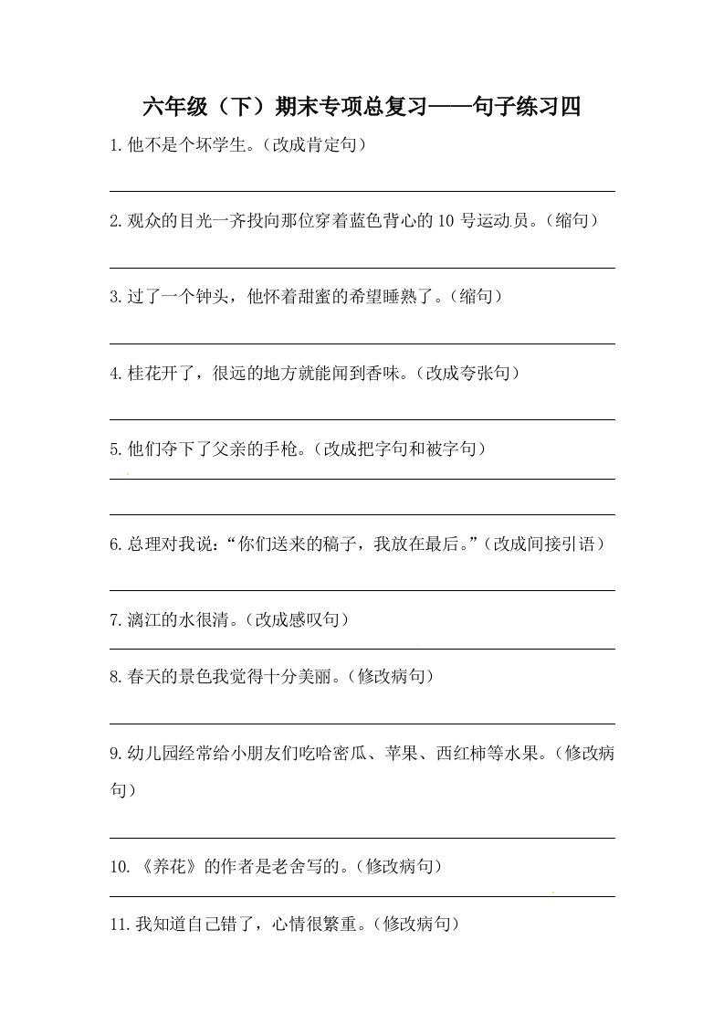六年级语文下册期末句子专项训练(四)(含答案)(部编版)_共6页