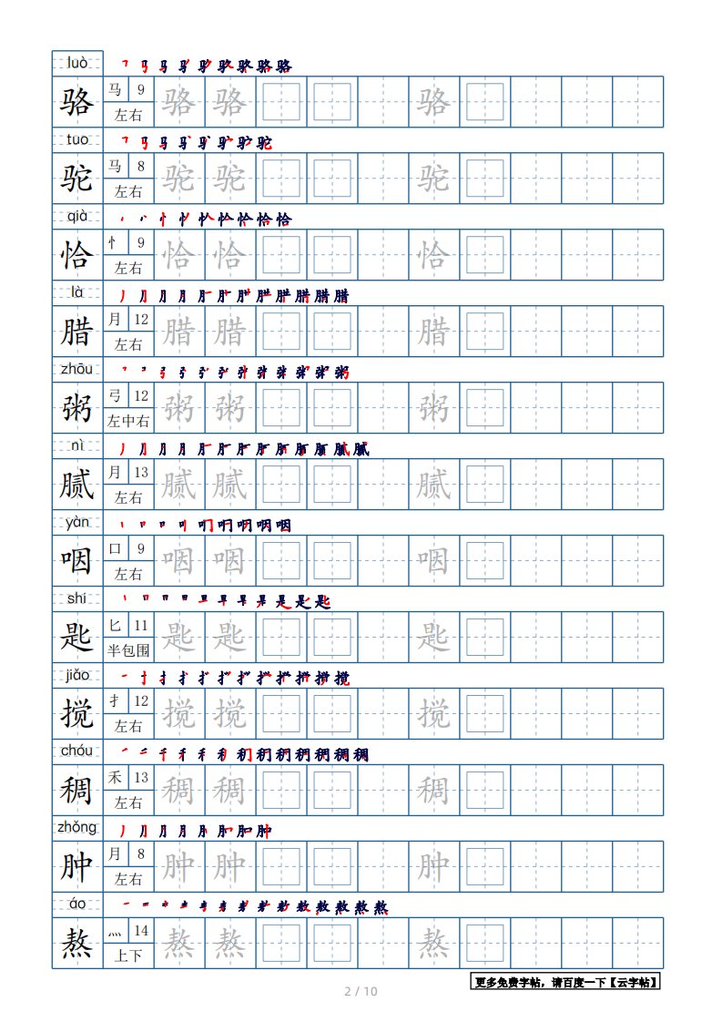 当前位置: 首页小学资源小学六年级正文 六年级语文下册【2022年更新】生字表120个字帖10页(带偏旁部首、笔顺,拼音)(部编版)_共10页 小学六年级 6 天前 0 0 5 以上为部分内容预览,如需源文档请登录您的会员账号进行下载! 声明:本站所有文章,如无特殊说明或标注,均为本站原创发布。任何个人或组织,在未征得本站同意时,禁止复制、盗用、采集、发布本站内容到任何网站、书籍等各类媒体平台。如若本站内容侵犯了原著者的合法权益,可联系我们进行处理。 尚学资源永久会员 打赏 收藏 海报 链接