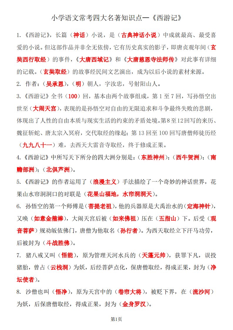 当前位置: 首页小学资源小学六年级正文 四大名著知识点汇总之《西游记》_共11页 小学六年级 6 天前 0 0 10 以上为部分内容预览,如需源文档请登录您的会员账号进行下载! 声明:本站所有文章,如无特殊说明或标注,均为本站原创发布。任何个人或组织,在未征得本站同意时,禁止复制、盗用、采集、发布本站内容到任何网站、书籍等各类媒体平台。如若本站内容侵犯了原著者的合法权益,可联系我们进行处理。 尚学资源永久会员 打赏 收藏 海报 链接