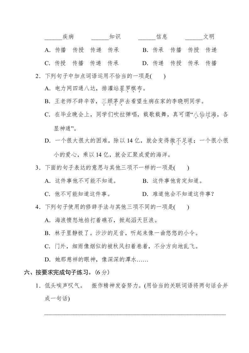 当前位置: 首页小学资源小学六年级正文 六年级语文下册重点中学小升初考试试卷(三)_共9页 小学六年级 6 天前 0 0 5 以上为部分内容预览,如需源文档请登录您的会员账号进行下载! 声明:本站所有文章,如无特殊说明或标注,均为本站原创发布。任何个人或组织,在未征得本站同意时,禁止复制、盗用、采集、发布本站内容到任何网站、书籍等各类媒体平台。如若本站内容侵犯了原著者的合法权益,可联系我们进行处理。 尚学资源永久会员 打赏 收藏 海报 链接