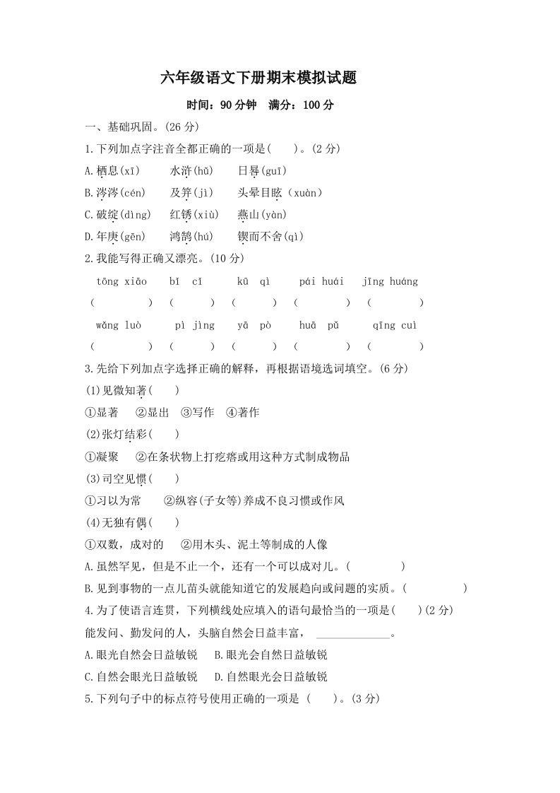 当前位置: 首页小学资源小学六年级正文 六年级语文下册期末模拟试题(试题)部编版_共7页 小学六年级 6 天前 0 0 5 以上为部分内容预览,如需源文档请登录您的会员账号进行下载! 声明:本站所有文章,如无特殊说明或标注,均为本站原创发布。任何个人或组织,在未征得本站同意时,禁止复制、盗用、采集、发布本站内容到任何网站、书籍等各类媒体平台。如若本站内容侵犯了原著者的合法权益,可联系我们进行处理。 尚学资源永久会员 打赏 收藏 海报 链接