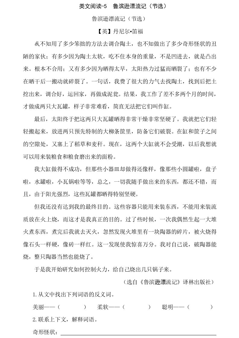当前位置: 首页小学资源小学六年级正文 六年级语文下册类文阅读-5鲁滨逊漂流记(节选)_共1页 小学六年级 6 天前 0 0 5 以上为部分内容预览,如需源文档请登录您的会员账号进行下载! 声明:本站所有文章,如无特殊说明或标注,均为本站原创发布。任何个人或组织,在未征得本站同意时,禁止复制、盗用、采集、发布本站内容到任何网站、书籍等各类媒体平台。如若本站内容侵犯了原著者的合法权益,可联系我们进行处理。 尚学资源永久会员 打赏 收藏 海报 链接