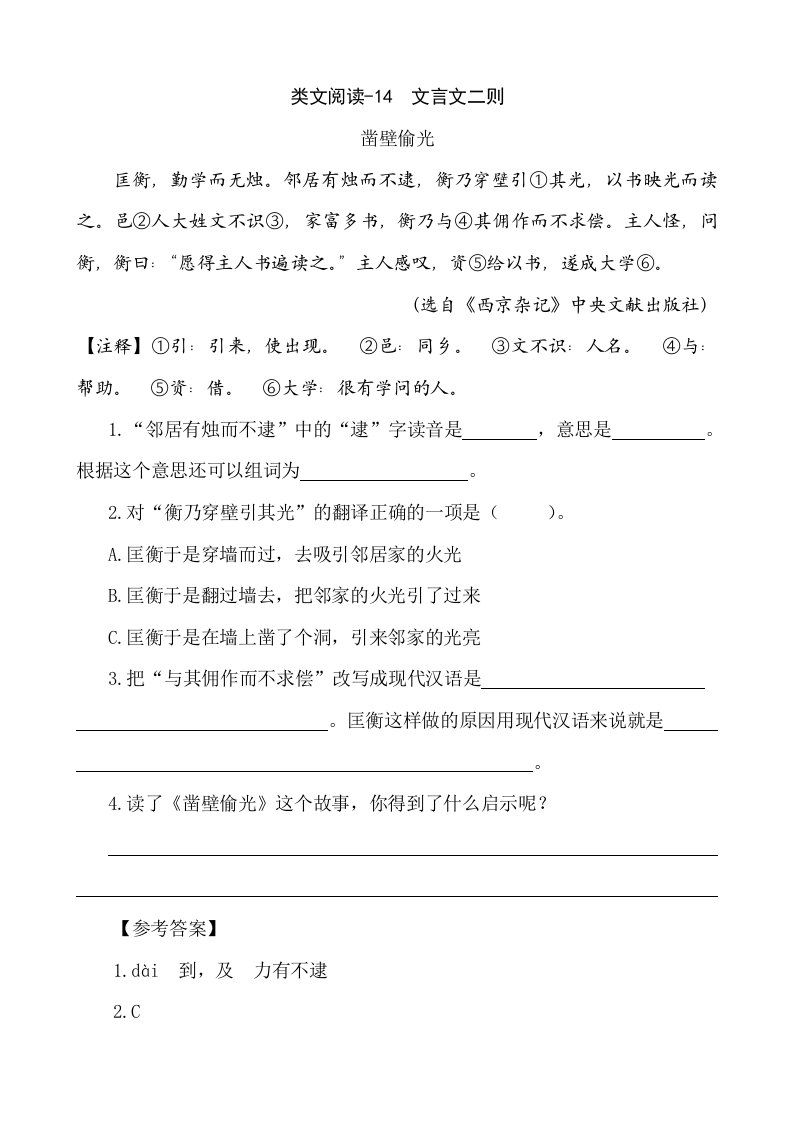 当前位置: 首页小学资源小学六年级正文 六年级语文下册类文阅读-14文言文二则_共2页 小学六年级 6 天前 0 0 5 以上为部分内容预览,如需源文档请登录您的会员账号进行下载! 声明:本站所有文章,如无特殊说明或标注,均为本站原创发布。任何个人或组织,在未征得本站同意时,禁止复制、盗用、采集、发布本站内容到任何网站、书籍等各类媒体平台。如若本站内容侵犯了原著者的合法权益,可联系我们进行处理。 尚学资源永久会员 打赏 收藏 海报 链接