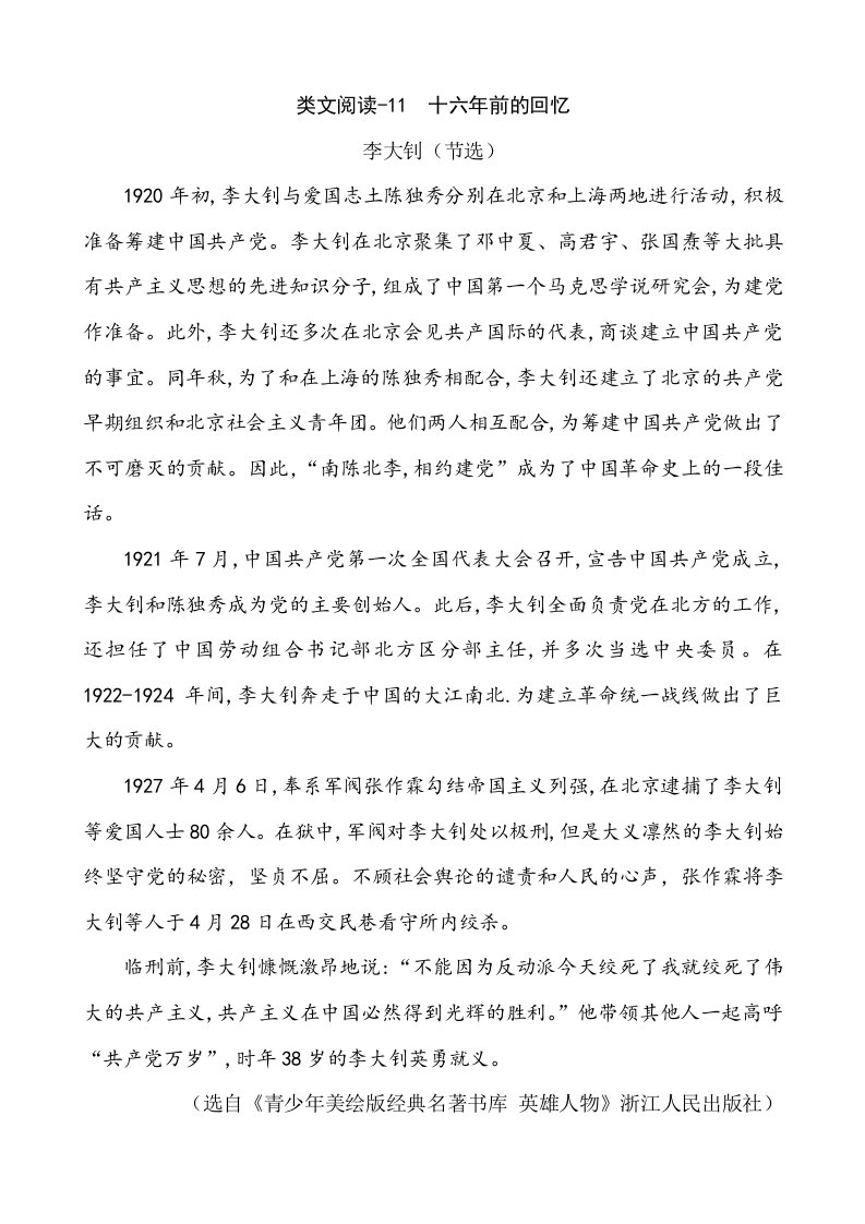 当前位置: 首页小学资源小学六年级正文 六年级语文下册类文阅读-11十六年前的回忆_共5页 小学六年级 6 天前 0 0 5 以上为部分内容预览,如需源文档请登录您的会员账号进行下载! 声明:本站所有文章,如无特殊说明或标注,均为本站原创发布。任何个人或组织,在未征得本站同意时,禁止复制、盗用、采集、发布本站内容到任何网站、书籍等各类媒体平台。如若本站内容侵犯了原著者的合法权益,可联系我们进行处理。 尚学资源永久会员 打赏 收藏 海报 链接