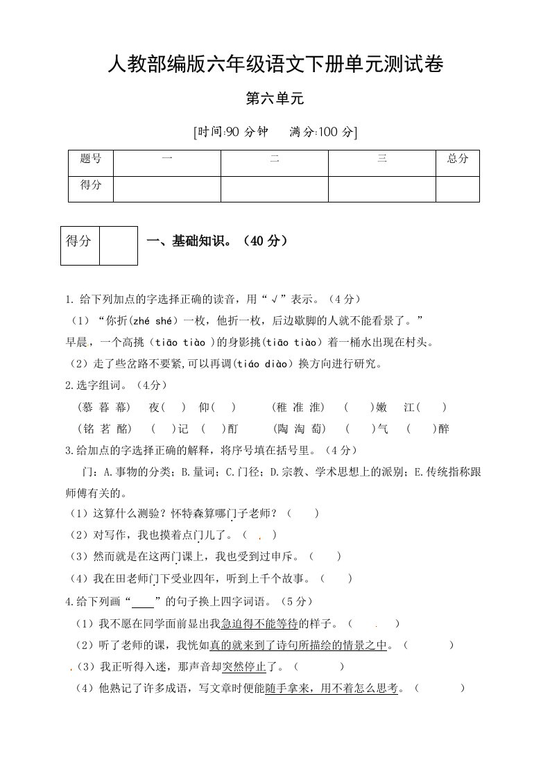 当前位置: 首页小学资源小学六年级正文 六年级语文下册人教部编版第6单元测试卷4(有答案)_共7页 小学六年级 6 天前 0 0 5 以上为部分内容预览,如需源文档请登录您的会员账号进行下载! 声明:本站所有文章,如无特殊说明或标注,均为本站原创发布。任何个人或组织,在未征得本站同意时,禁止复制、盗用、采集、发布本站内容到任何网站、书籍等各类媒体平台。如若本站内容侵犯了原著者的合法权益,可联系我们进行处理。 尚学资源永久会员 打赏 收藏 海报 链接