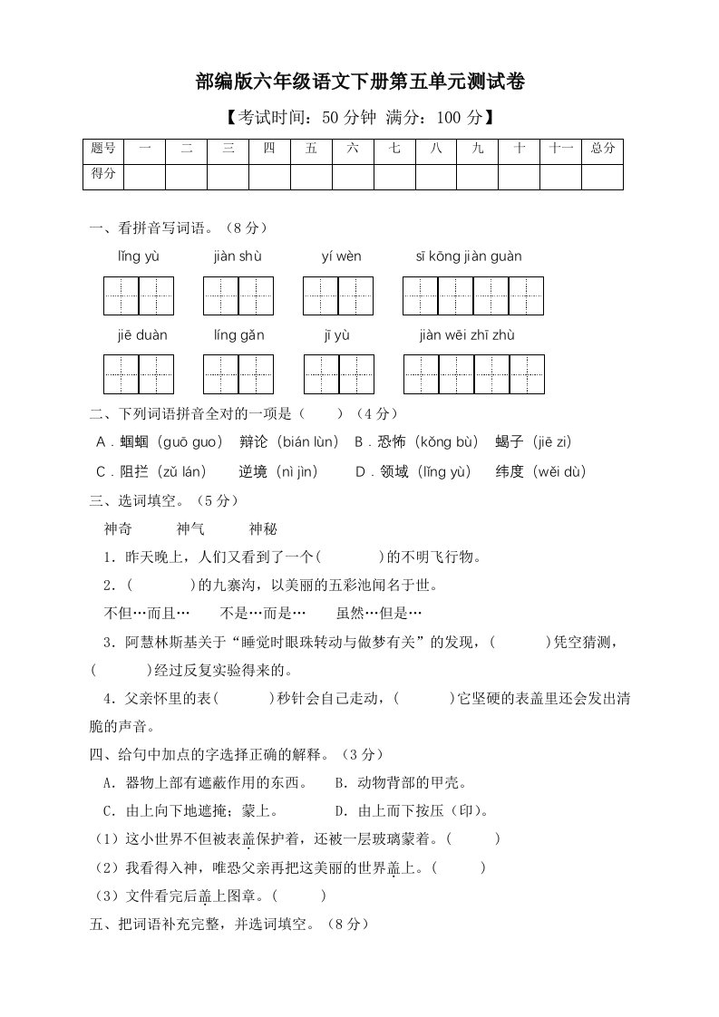 当前位置: 首页小学资源小学六年级正文 六年级语文下册人教部编版第5单元测试卷2(有答案)_共8页 小学六年级 7 天前 0 0 5 以上为部分内容预览,如需源文档请登录您的会员账号进行下载! 声明:本站所有文章,如无特殊说明或标注,均为本站原创发布。任何个人或组织,在未征得本站同意时,禁止复制、盗用、采集、发布本站内容到任何网站、书籍等各类媒体平台。如若本站内容侵犯了原著者的合法权益,可联系我们进行处理。 尚学资源永久会员 打赏 收藏 海报 链接