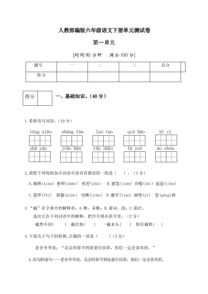 当前位置: 首页小学资源小学六年级正文 六年级语文下册人教部编版第1单元测试卷3(有答案)_共9页 小学六年级 6 天前 0 0 5 以上为部分内容预览,如需源文档请登录您的会员账号进行下载! 声明:本站所有文章,如无特殊说明或标注,均为本站原创发布。任何个人或组织,在未征得本站同意时,禁止复制、盗用、采集、发布本站内容到任何网站、书籍等各类媒体平台。如若本站内容侵犯了原著者的合法权益,可联系我们进行处理。 尚学资源永久会员 打赏 收藏 海报 链接