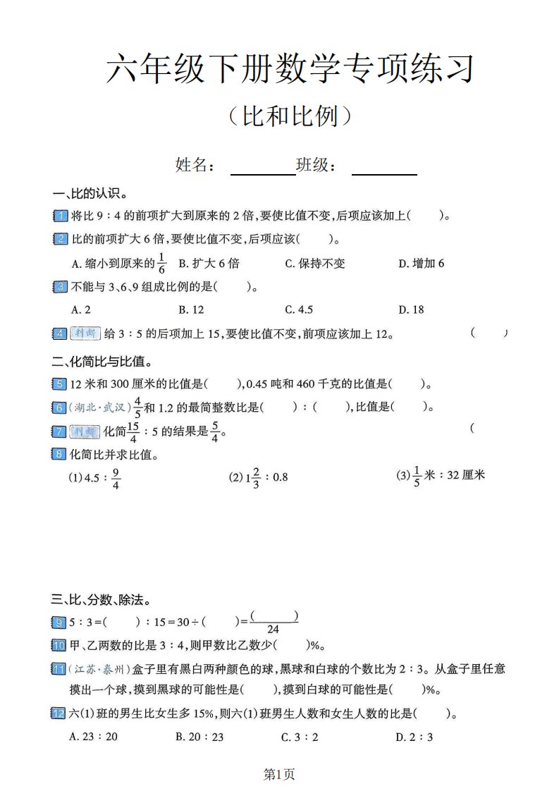 当前位置: 首页小学资源小学六年级正文 六年级下数学比和比例专项练习卷_共4页 小学六年级 6 天前 0 0 5 以上为部分内容预览,如需源文档请登录您的会员账号进行下载! 声明:本站所有文章,如无特殊说明或标注,均为本站原创发布。任何个人或组织,在未征得本站同意时,禁止复制、盗用、采集、发布本站内容到任何网站、书籍等各类媒体平台。如若本站内容侵犯了原著者的合法权益,可联系我们进行处理。 尚学资源永久会员 打赏 收藏 海报 链接