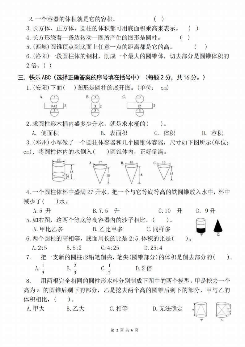 当前位置: 首页小学资源小学六年级正文 六年级下数学第三单元综合能力测试卷《人教版》_共7页 小学六年级 6 天前 0 0 5 以上为部分内容预览,如需源文档请登录您的会员账号进行下载! 声明:本站所有文章,如无特殊说明或标注,均为本站原创发布。任何个人或组织,在未征得本站同意时,禁止复制、盗用、采集、发布本站内容到任何网站、书籍等各类媒体平台。如若本站内容侵犯了原著者的合法权益,可联系我们进行处理。 尚学资源永久会员 打赏 收藏 海报 链接