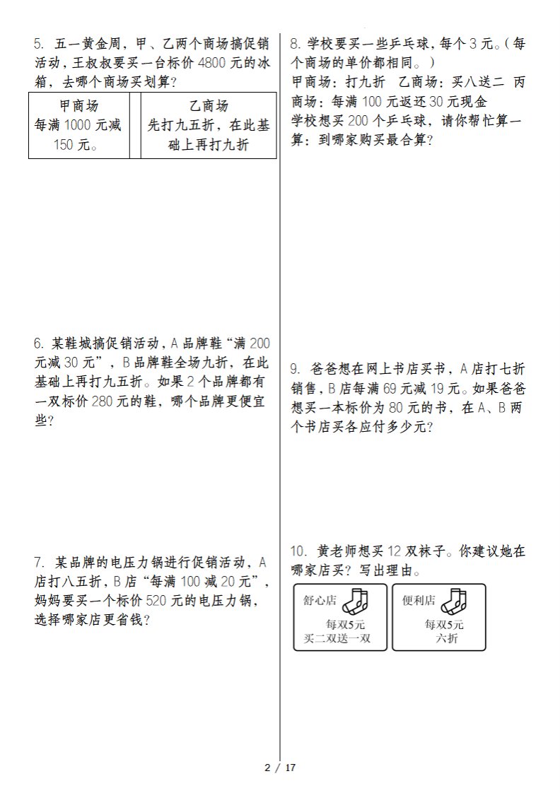 当前位置: 首页小学资源小学六年级正文 六下数学经典例题专练:促销问题“基础版”_共17页 小学六年级 6 天前 0 0 10 以上为部分内容预览,如需源文档请登录您的会员账号进行下载! 声明:本站所有文章,如无特殊说明或标注,均为本站原创发布。任何个人或组织,在未征得本站同意时,禁止复制、盗用、采集、发布本站内容到任何网站、书籍等各类媒体平台。如若本站内容侵犯了原著者的合法权益,可联系我们进行处理。 尚学资源永久会员 打赏 收藏 海报 链接