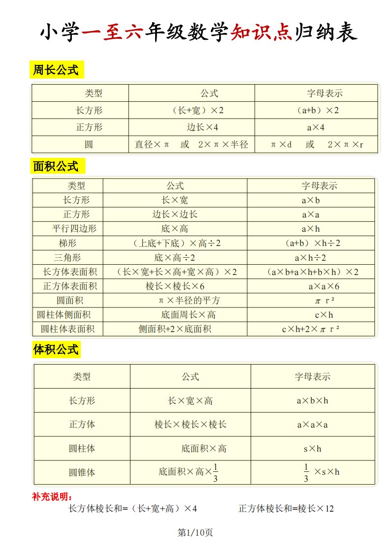 《知识点归纳表》六下数学【全国通用】_共10页