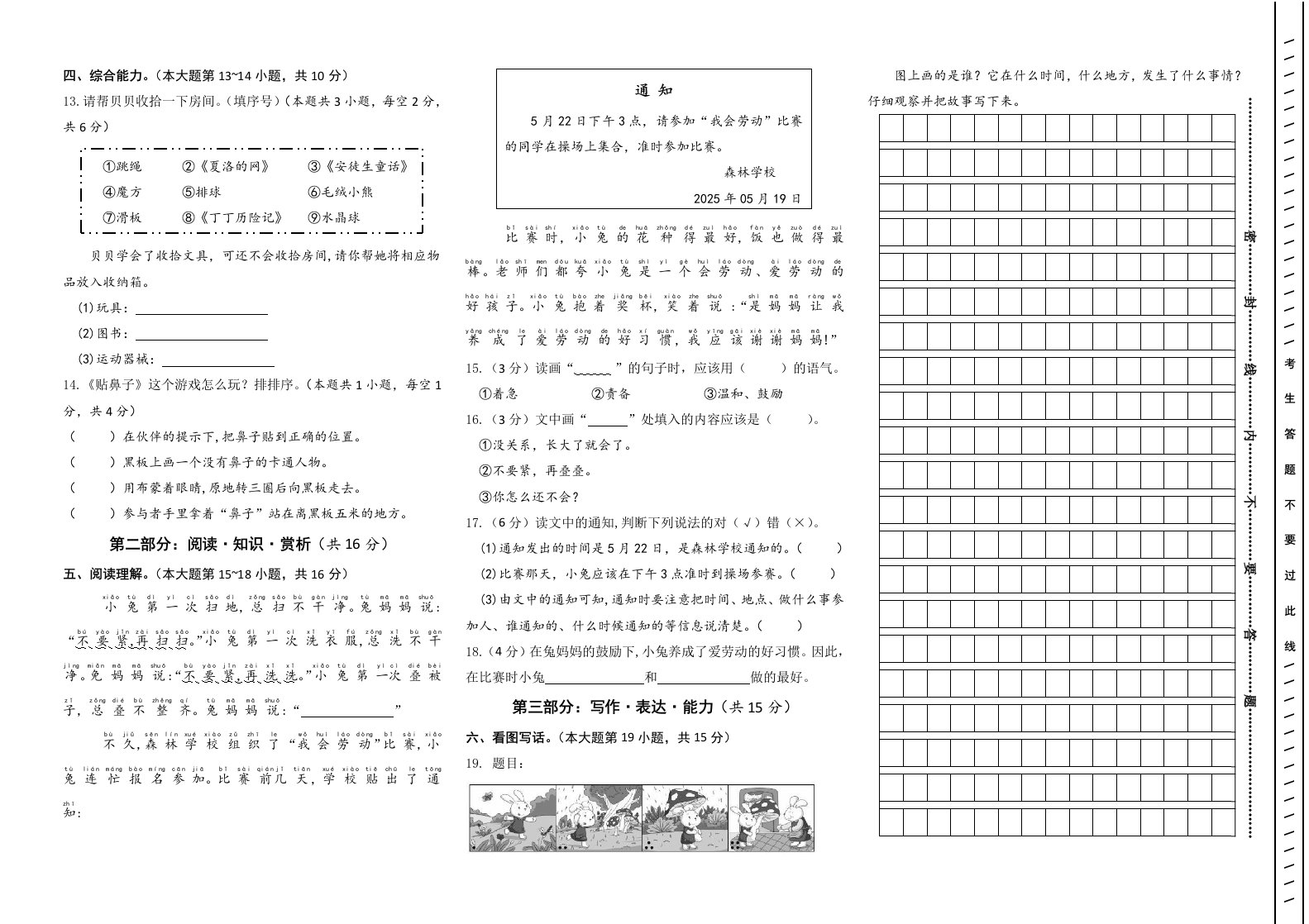 【素养评测】统编版语文一年级下册第七单元提优卷(含答案)_共8页