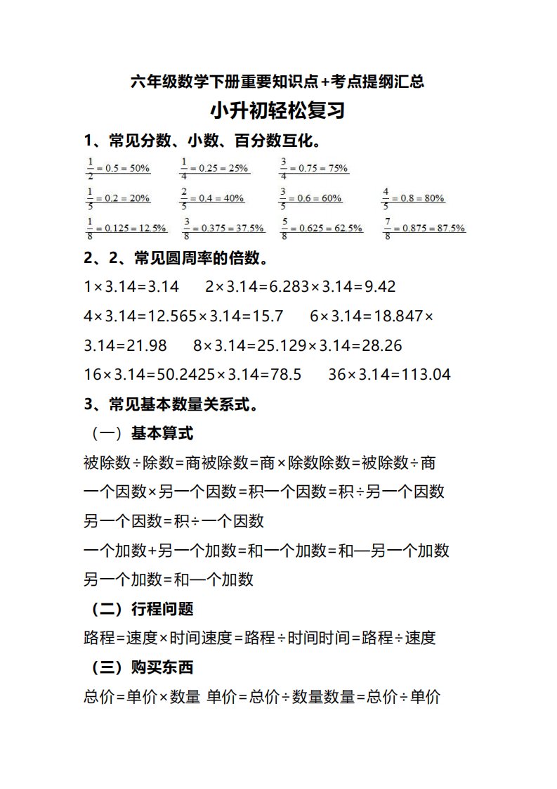 当前位置: 首页小学资源小学六年级正文 六下数学重要知识点+考点提纲汇总(1)_共7页 小学六年级 6 天前 0 0 5 以上为部分内容预览,如需源文档请登录您的会员账号进行下载! 声明:本站所有文章,如无特殊说明或标注,均为本站原创发布。任何个人或组织,在未征得本站同意时,禁止复制、盗用、采集、发布本站内容到任何网站、书籍等各类媒体平台。如若本站内容侵犯了原著者的合法权益,可联系我们进行处理。 尚学资源永久会员 打赏 收藏 海报 链接
