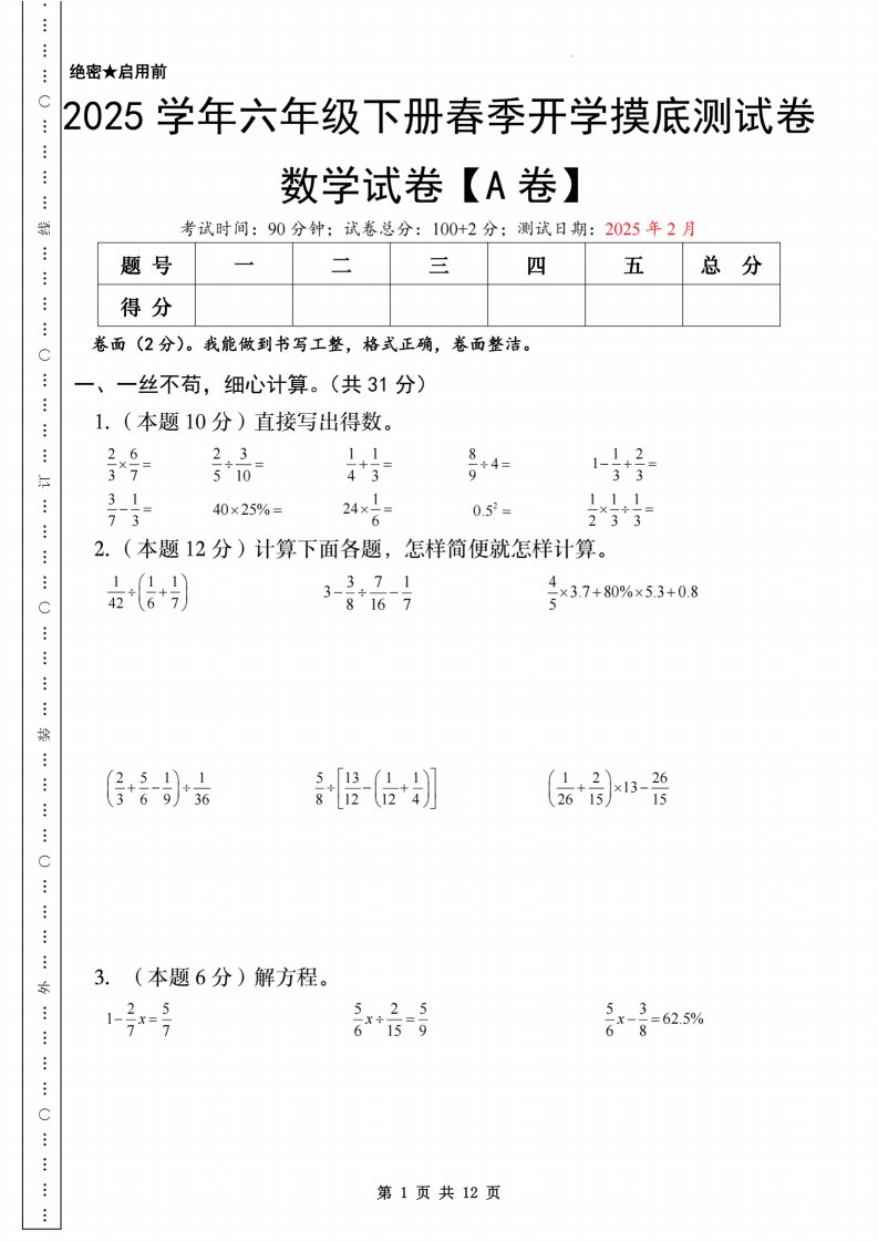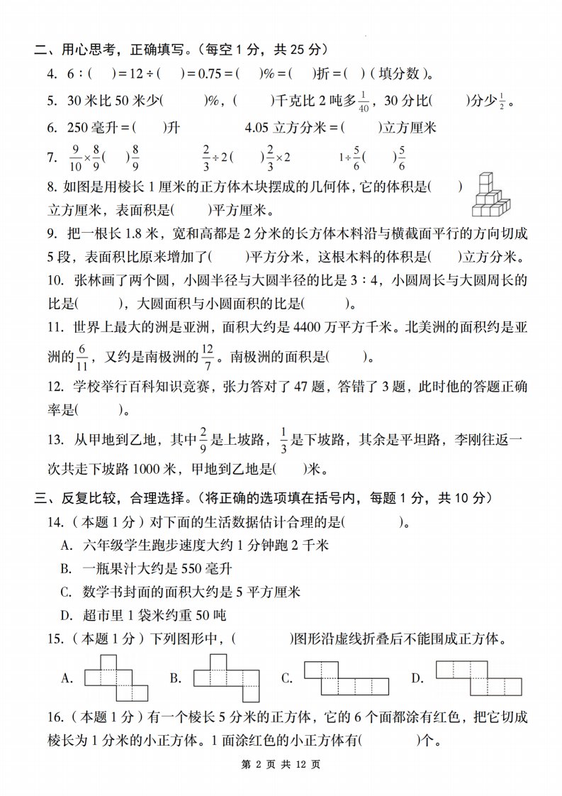 当前位置: 首页小学资源小学六年级正文 【苏教】2025学年六年级下册春季开学摸底测试卷数学试卷【A卷】_共12页 小学六年级 6 天前 0 0 10 以上为部分内容预览,如需源文档请登录您的会员账号进行下载! 声明:本站所有文章,如无特殊说明或标注,均为本站原创发布。任何个人或组织,在未征得本站同意时,禁止复制、盗用、采集、发布本站内容到任何网站、书籍等各类媒体平台。如若本站内容侵犯了原著者的合法权益,可联系我们进行处理。 尚学资源永久会员 打赏 收藏 海报 链接