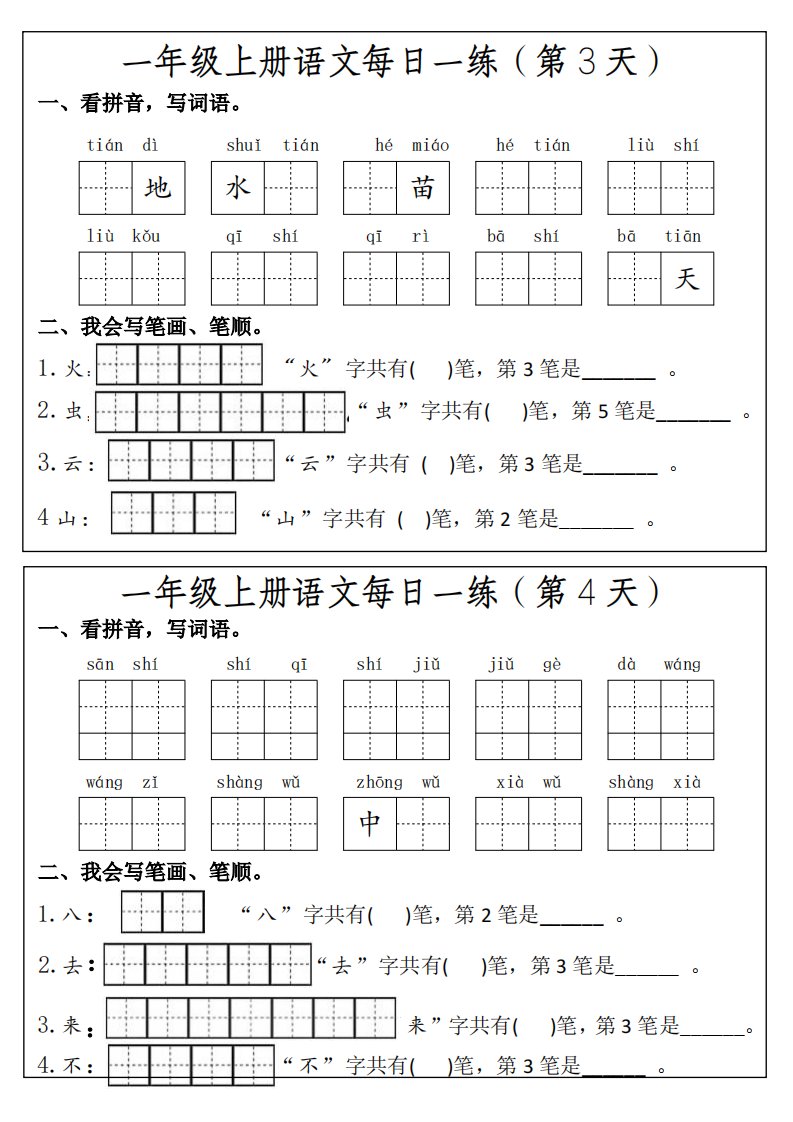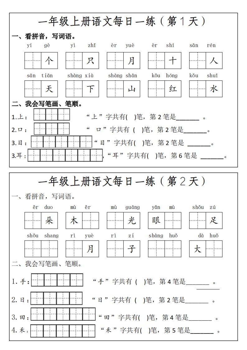 当前位置: 首页小学资源小学一年级正文 一上语文每日一练笔画笔顺_共5页 小学一年级 2 周前 0 0 5 以上为部分内容预览,如需源文档请登录您的会员账号进行下载! 声明:本站所有文章,如无特殊说明或标注,均为本站原创发布。任何个人或组织,在未征得本站同意时,禁止复制、盗用、采集、发布本站内容到任何网站、书籍等各类媒体平台。如若本站内容侵犯了原著者的合法权益,可联系我们进行处理。 尚学资源永久会员 打赏 收藏 海报 链接