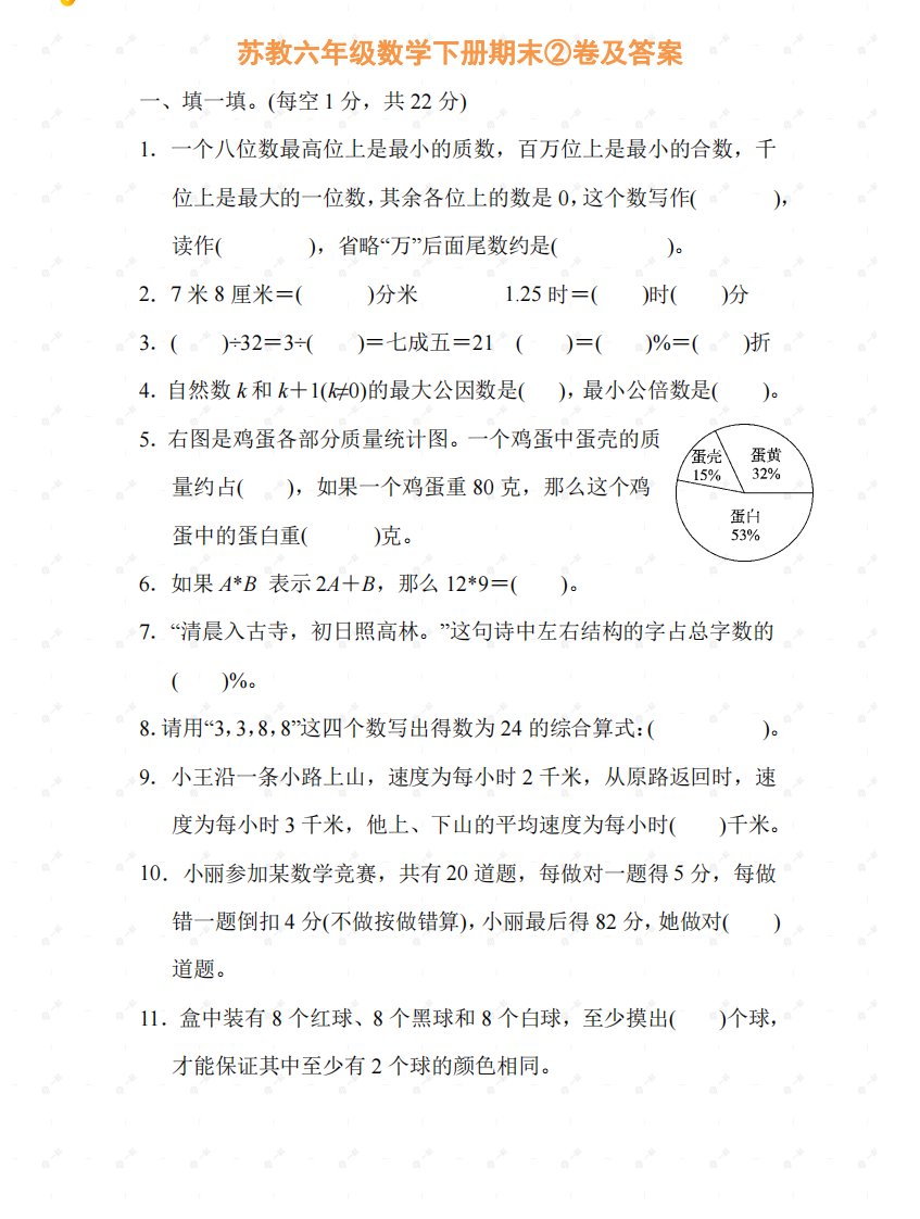 当前位置: 首页小学资源小学六年级正文 苏教六年级数学下册期末测试②卷及答案_共11页 小学六年级 6 天前 0 0 10 以上为部分内容预览,如需源文档请登录您的会员账号进行下载! 声明:本站所有文章,如无特殊说明或标注,均为本站原创发布。任何个人或组织,在未征得本站同意时,禁止复制、盗用、采集、发布本站内容到任何网站、书籍等各类媒体平台。如若本站内容侵犯了原著者的合法权益,可联系我们进行处理。 尚学资源永久会员 打赏 收藏 海报 链接