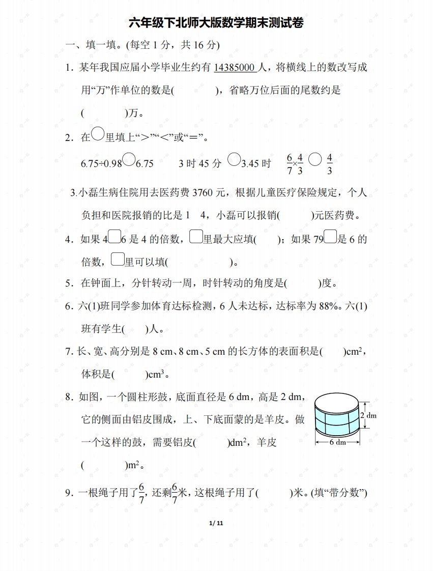 当前位置: 首页小学资源小学六年级正文 北师大六年级数学下册期末检测③卷及答案_共11页 小学六年级 6 天前 0 0 10 以上为部分内容预览,如需源文档请登录您的会员账号进行下载! 声明:本站所有文章,如无特殊说明或标注,均为本站原创发布。任何个人或组织,在未征得本站同意时,禁止复制、盗用、采集、发布本站内容到任何网站、书籍等各类媒体平台。如若本站内容侵犯了原著者的合法权益,可联系我们进行处理。 尚学资源永久会员 打赏 收藏 海报 链接