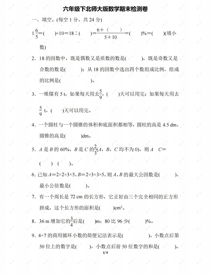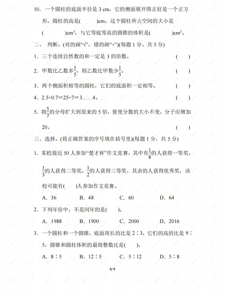 当前位置: 首页小学资源小学六年级正文 北师大六年级数学下册期末检测④卷及答案_共9页 小学六年级 6 天前 0 0 5 以上为部分内容预览,如需源文档请登录您的会员账号进行下载! 声明:本站所有文章,如无特殊说明或标注,均为本站原创发布。任何个人或组织,在未征得本站同意时,禁止复制、盗用、采集、发布本站内容到任何网站、书籍等各类媒体平台。如若本站内容侵犯了原著者的合法权益,可联系我们进行处理。 尚学资源永久会员 打赏 收藏 海报 链接