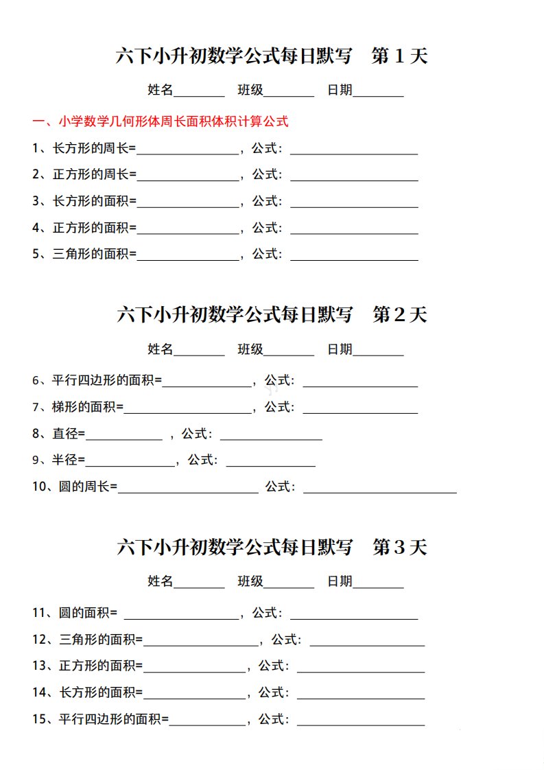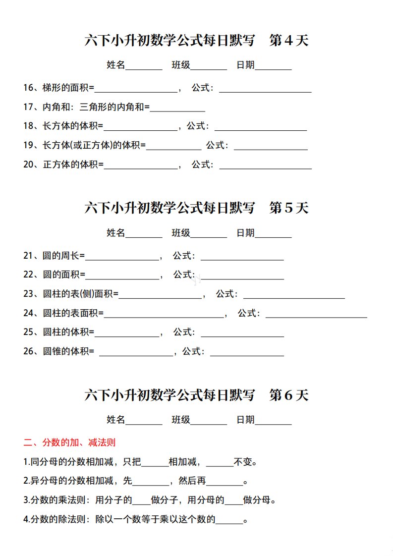 当前位置: 首页小学资源小学六年级正文 六下小升初数学公式每日默写小纸条_共12页 小学六年级 6 天前 0 0 10 以上为部分内容预览,如需源文档请登录您的会员账号进行下载! 声明:本站所有文章,如无特殊说明或标注,均为本站原创发布。任何个人或组织,在未征得本站同意时,禁止复制、盗用、采集、发布本站内容到任何网站、书籍等各类媒体平台。如若本站内容侵犯了原著者的合法权益,可联系我们进行处理。 尚学资源永久会员 打赏 收藏 海报 链接