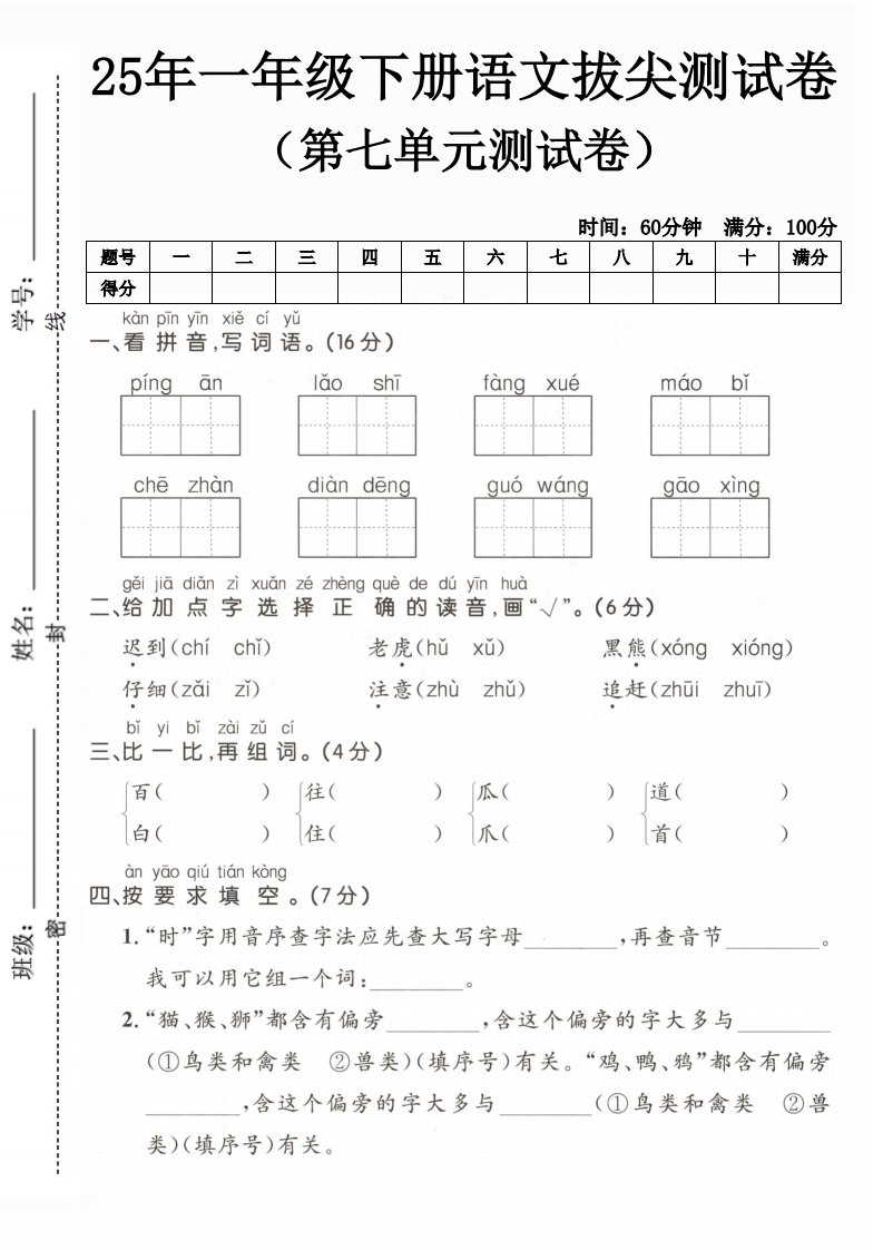 25一下语文第七单元拔尖测试卷(含答案5页)_共5页