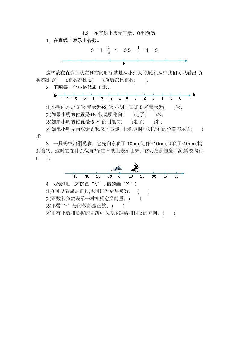 六年级数学下册1.3在直线上表示正数、0和负数_共2页