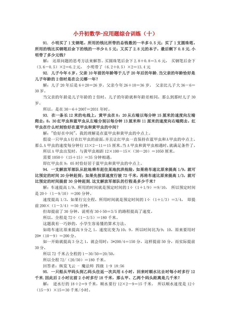 六年级数学下册小升初应用题综合训练(十)苏教版_共3页