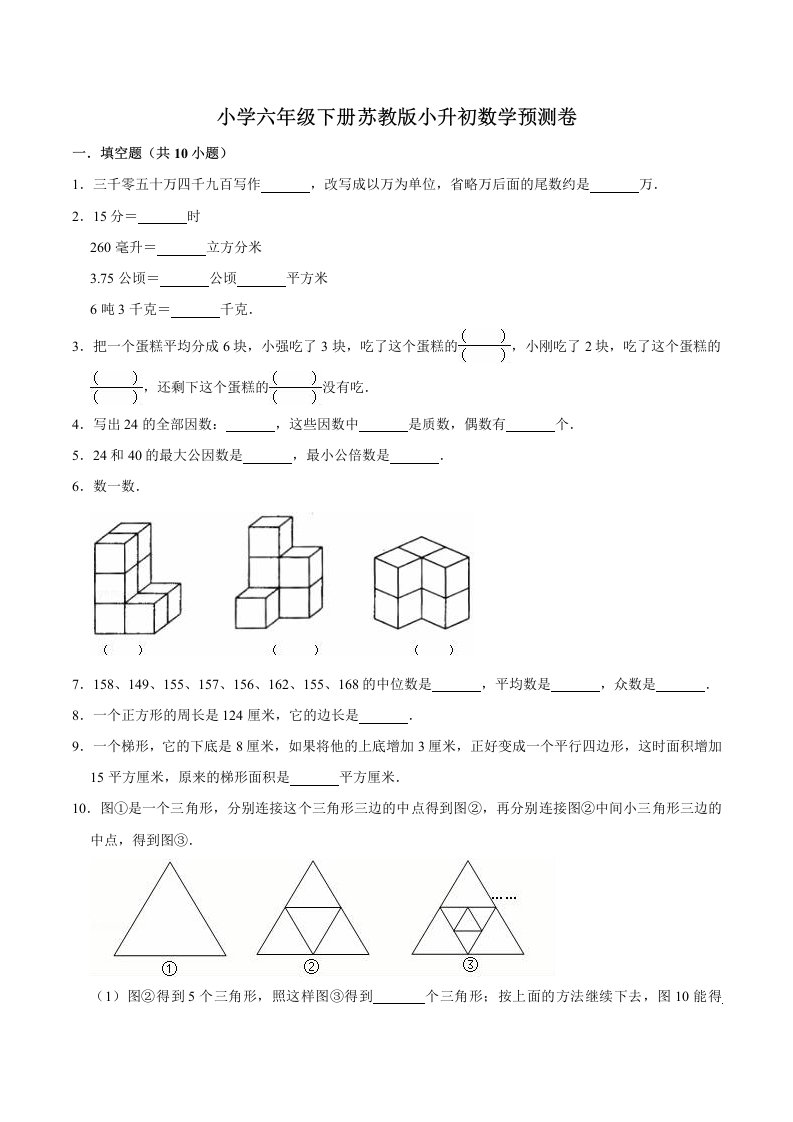 当前位置: 首页小学资源小学六年级正文 六年级数学下册小升初模拟试题(31)苏教版(含解析)_共18页 小学六年级 6 天前 0 0 10 以上为部分内容预览,如需源文档请登录您的会员账号进行下载! 声明:本站所有文章,如无特殊说明或标注,均为本站原创发布。任何个人或组织,在未征得本站同意时,禁止复制、盗用、采集、发布本站内容到任何网站、书籍等各类媒体平台。如若本站内容侵犯了原著者的合法权益,可联系我们进行处理。 尚学资源永久会员 打赏 收藏 海报 链接