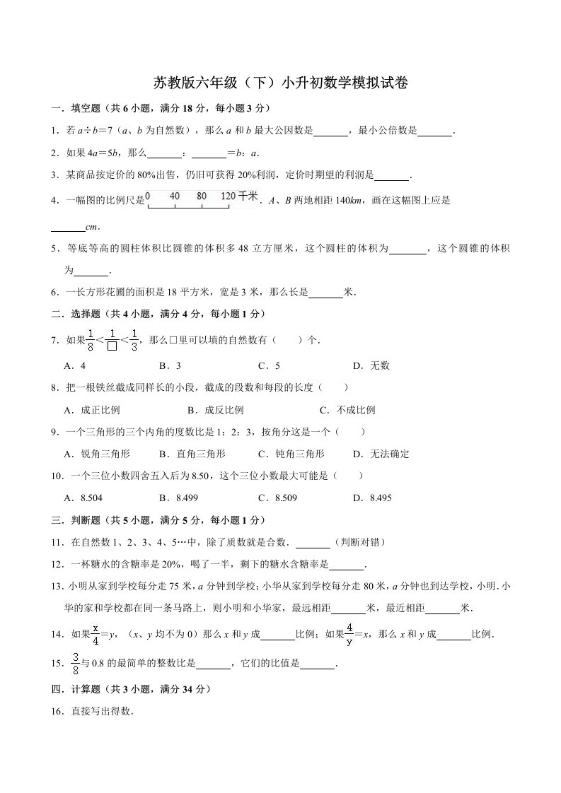 当前位置: 首页小学资源小学六年级正文 六年级数学下册小升初模拟试题(1)苏教版(含解析)_共11页 小学六年级 6 天前 0 0 10 以上为部分内容预览,如需源文档请登录您的会员账号进行下载! 声明:本站所有文章,如无特殊说明或标注,均为本站原创发布。任何个人或组织,在未征得本站同意时,禁止复制、盗用、采集、发布本站内容到任何网站、书籍等各类媒体平台。如若本站内容侵犯了原著者的合法权益,可联系我们进行处理。 尚学资源永久会员 打赏 收藏 海报 链接
