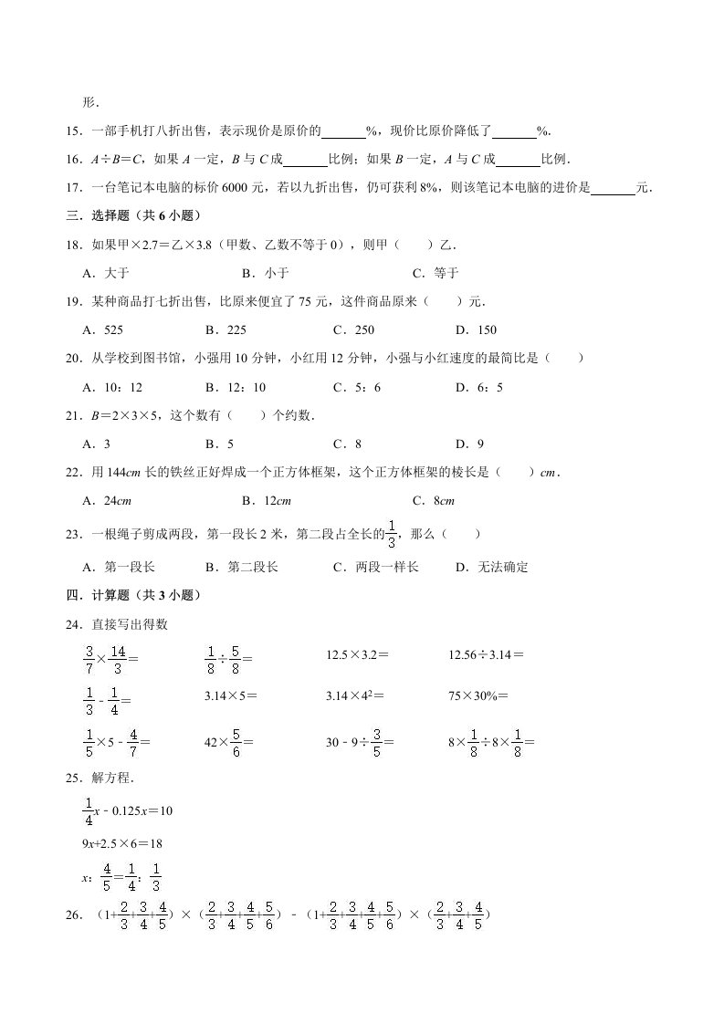 当前位置: 首页小学资源小学六年级正文 六年级数学下册小升初模拟试题(15)苏教版(含解析)_共13页 小学六年级 6 天前 0 0 10 以上为部分内容预览,如需源文档请登录您的会员账号进行下载! 声明:本站所有文章,如无特殊说明或标注,均为本站原创发布。任何个人或组织,在未征得本站同意时,禁止复制、盗用、采集、发布本站内容到任何网站、书籍等各类媒体平台。如若本站内容侵犯了原著者的合法权益,可联系我们进行处理。 尚学资源永久会员 打赏 收藏 海报 链接