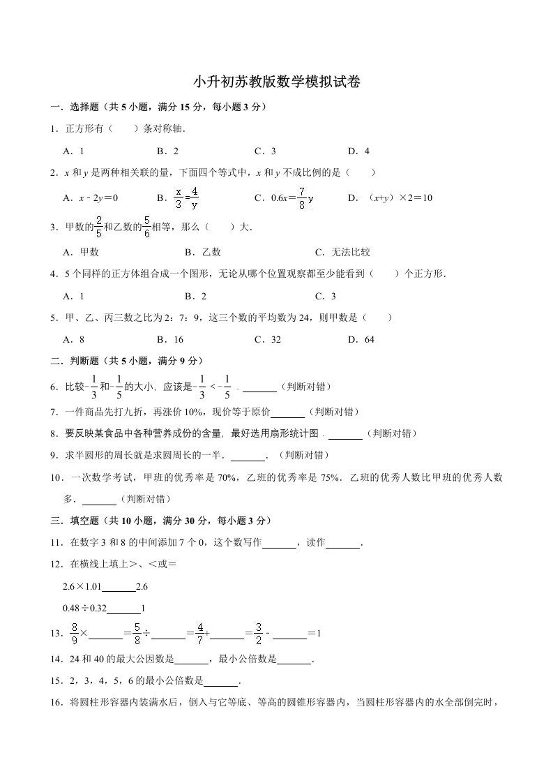 当前位置: 首页小学资源小学六年级正文 六年级数学下册小升初模拟试题(13)苏教版(含解析)_共15页 小学六年级 6 天前 0 0 10 以上为部分内容预览,如需源文档请登录您的会员账号进行下载! 声明:本站所有文章,如无特殊说明或标注,均为本站原创发布。任何个人或组织,在未征得本站同意时,禁止复制、盗用、采集、发布本站内容到任何网站、书籍等各类媒体平台。如若本站内容侵犯了原著者的合法权益,可联系我们进行处理。 尚学资源永久会员 打赏 收藏 海报 链接