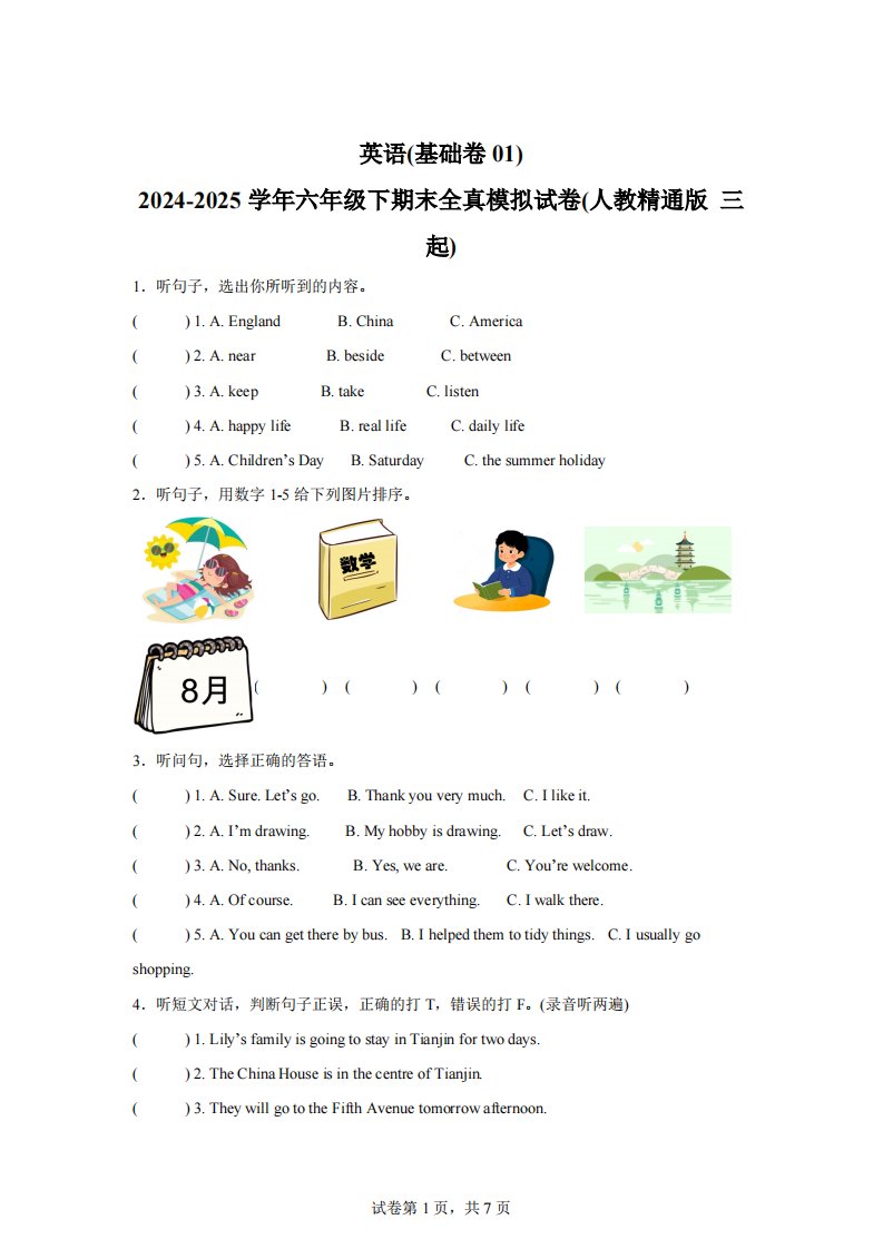 当前位置: 首页小学资源小学六年级正文 2024-2025学年六年级下期末全真模拟试卷(人教精通版三起)英语(基础卷01)_共15页 小学六年级 6 天前 0 0 10 以上为部分内容预览,如需源文档请登录您的会员账号进行下载! 声明:本站所有文章,如无特殊说明或标注,均为本站原创发布。任何个人或组织,在未征得本站同意时,禁止复制、盗用、采集、发布本站内容到任何网站、书籍等各类媒体平台。如若本站内容侵犯了原著者的合法权益,可联系我们进行处理。 尚学资源永久会员 打赏 收藏 海报 链接