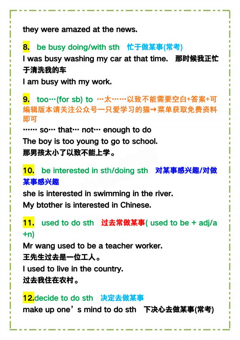 当前位置: 首页小学资源小学六年级正文 六年级下英语《固定短语搭配》赶紧收藏吧__共3页 小学六年级 6 天前 0 0 5 以上为部分内容预览,如需源文档请登录您的会员账号进行下载! 声明:本站所有文章,如无特殊说明或标注,均为本站原创发布。任何个人或组织,在未征得本站同意时,禁止复制、盗用、采集、发布本站内容到任何网站、书籍等各类媒体平台。如若本站内容侵犯了原著者的合法权益,可联系我们进行处理。 尚学资源永久会员 打赏 收藏 海报 链接