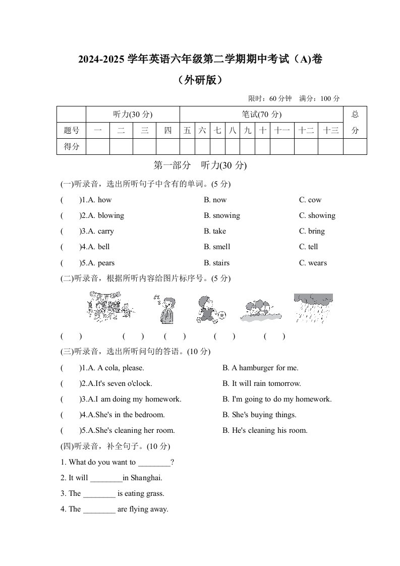 当前位置: 首页小学资源小学六年级正文 外研版2024-2025学年英语六年级下册第二学期期中考试(A)卷_共9页 小学六年级 6 天前 0 0 5 以上为部分内容预览,如需源文档请登录您的会员账号进行下载! 声明:本站所有文章,如无特殊说明或标注,均为本站原创发布。任何个人或组织,在未征得本站同意时,禁止复制、盗用、采集、发布本站内容到任何网站、书籍等各类媒体平台。如若本站内容侵犯了原著者的合法权益,可联系我们进行处理。 尚学资源永久会员 打赏 收藏 海报 链接