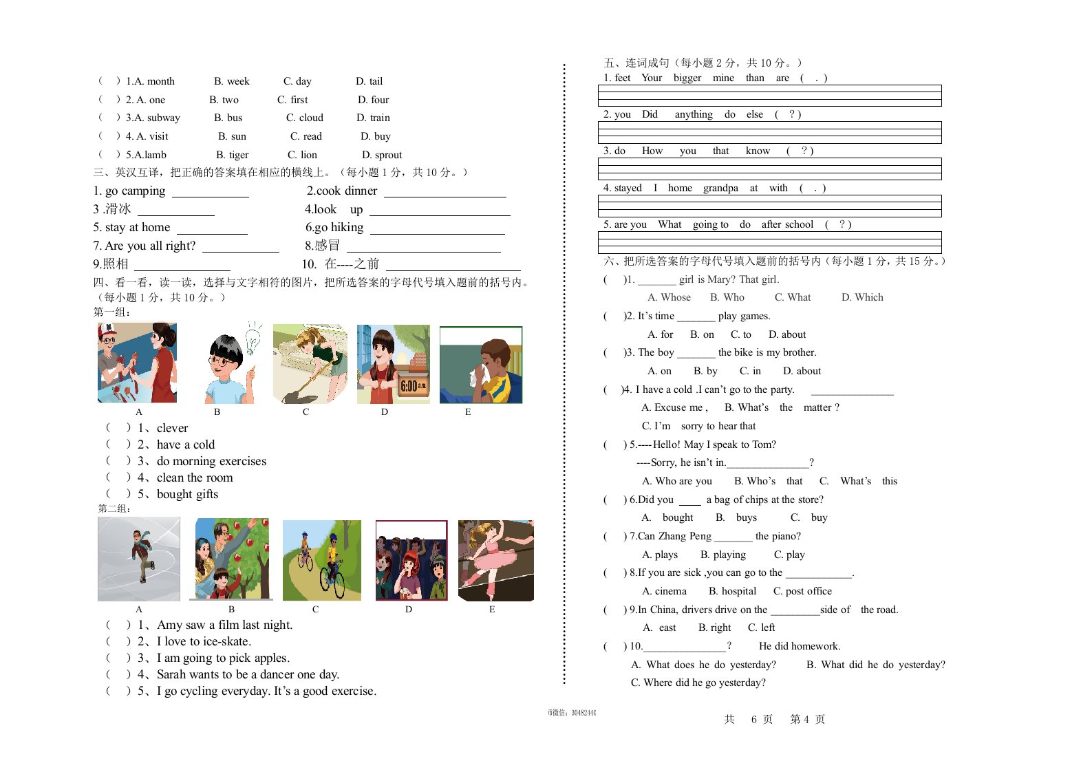 【期中】六下人教PEP版英语期中试卷(无答案)_共3页