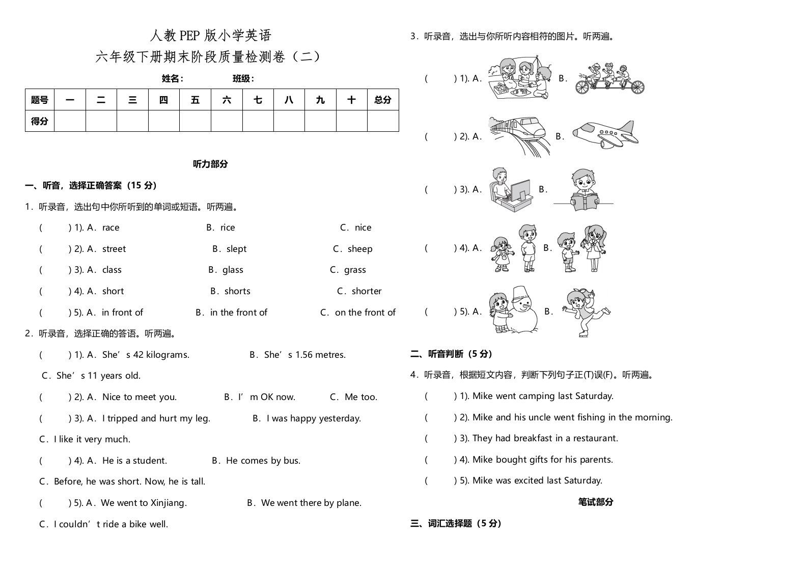 当前位置: 首页小学资源小学六年级正文 六年级英语下册人教PEP版期末阶段质量检测卷(二)(含参考答案)_共6页 小学六年级 5 天前 0 0 5 以上为部分内容预览,如需源文档请登录您的会员账号进行下载! 声明:本站所有文章,如无特殊说明或标注,均为本站原创发布。任何个人或组织,在未征得本站同意时,禁止复制、盗用、采集、发布本站内容到任何网站、书籍等各类媒体平台。如若本站内容侵犯了原著者的合法权益,可联系我们进行处理。 尚学资源永久会员 打赏 收藏 海报 链接